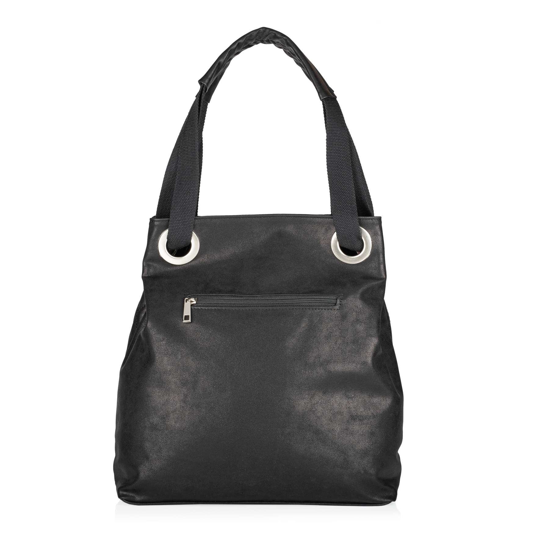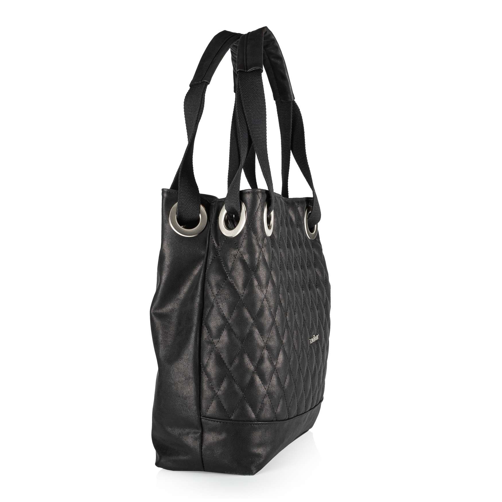 Dámská taška značky RIEKER, která Vás zaujme svým vzhledem a praktičností. Svrchní materiál je v černé barvě a zdobí jej stříbrné detaily. Ze zadní strany Vás určitě potěší malá kapsička sloužící k uložení různých drobnosti. Kabelka má zip, po jehož rozepnutí se Vám nabízí několik dalších kapes například na mobil nebo klíče. Tento praktický model bude spolehlivým společníkem na každodenní pochůzky. Rozměry: cca V 39 cm x Š 37 cm Vnitřní uspořádání: Kabelka není dělená.