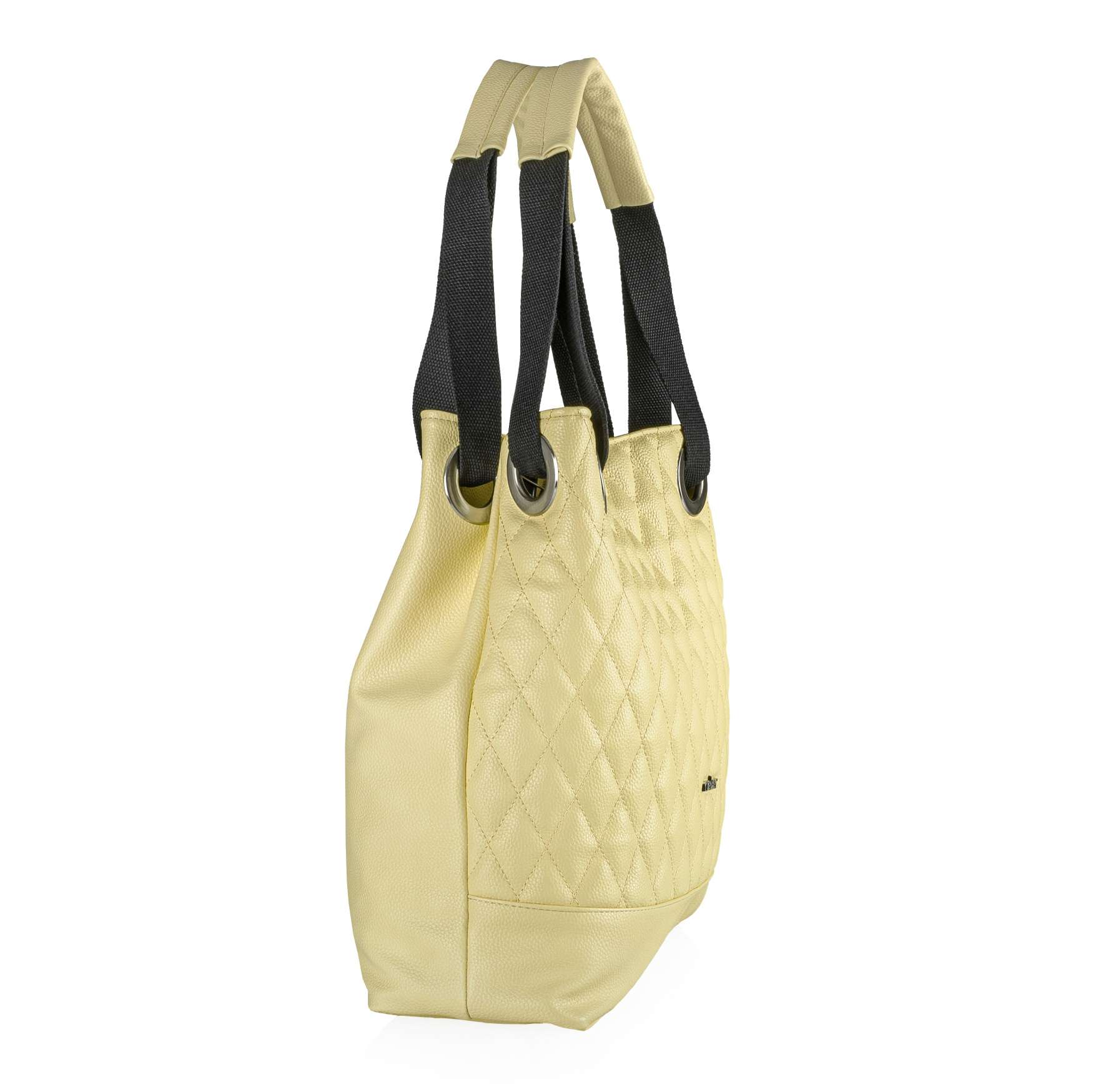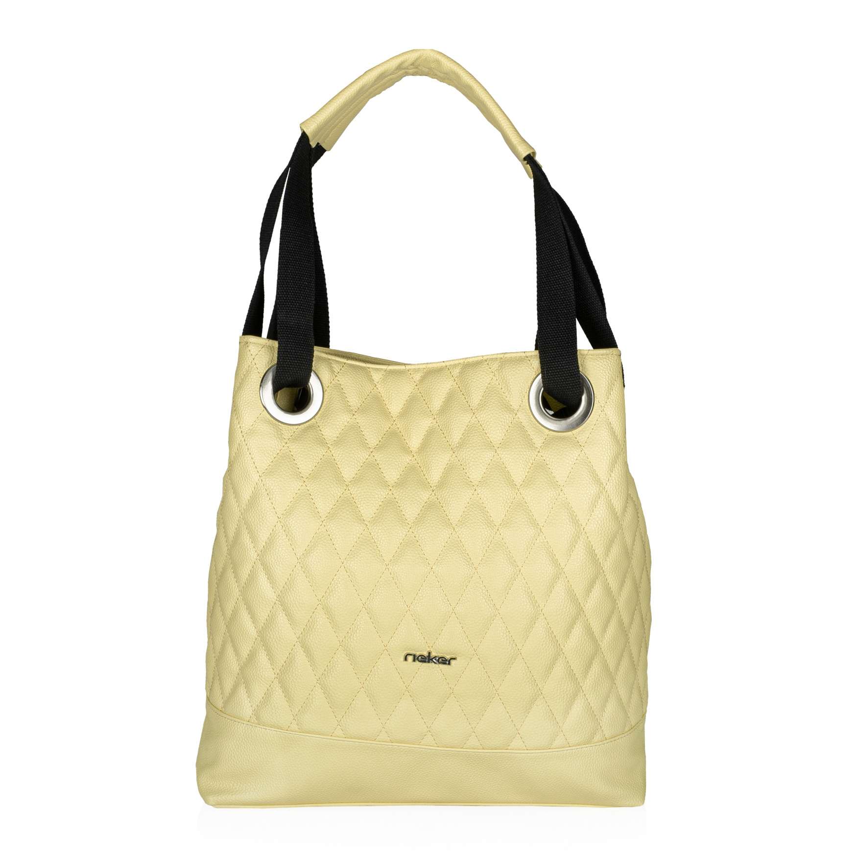 Dámská taška značky RIEKER, která Vás zaujme svým vzhledem a praktičností. Vrchní materiál je ve žluté barvě a zdobí jej detaily stříbrné barvy. Ze zadní strany Vás jistě potěší malá kapsička sloužící k uložení různých drobností. Kabelka má zip, po jehož rozepnutí se Vám nabízí několik dalších kapes například na mobil nebo klíče. Tento praktický model bude spolehlivým společníkem pro každodenní pochůzky. Rozměry: cca v 39 cm x š 37 cm Vnitřní uspořádání: Kabelka není dělená.