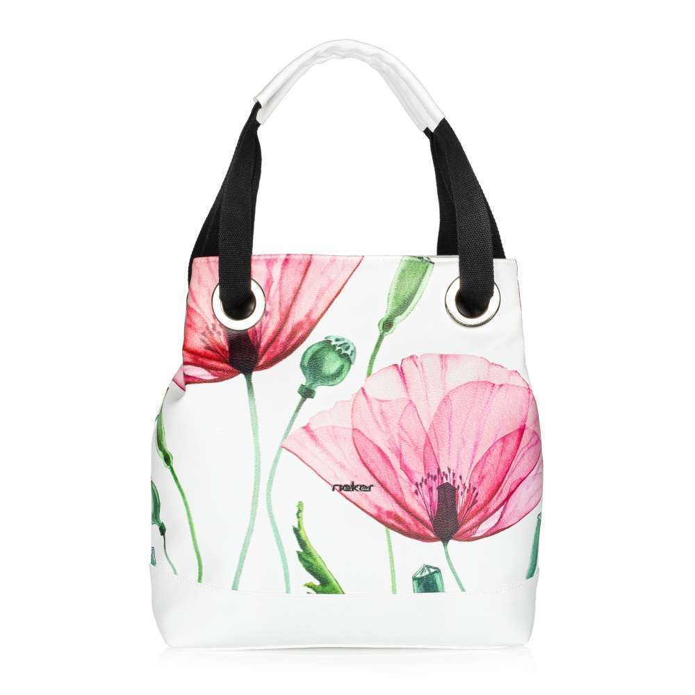 Dámská taška značky RIEKER, která Vás zaujme svým vzhledem a praktičností. Vrchní materiál zdobí výrazný vzor vlčích máků a logo značky. Ze zadní strany Vás jistě potěší malá kapsička sloužící k uložení různých drobností. Kabelka má zip, po jehož rozepnutí se Vám nabízí několik dalších kapes například na mobil nebo klíče. Tento praktický model bude spolehlivým společníkem pro každodenní pochůzky. Rozměry: cca v 39 cm x š 37 cm Vnitřní uspořádání: Kabelka není dělená.
