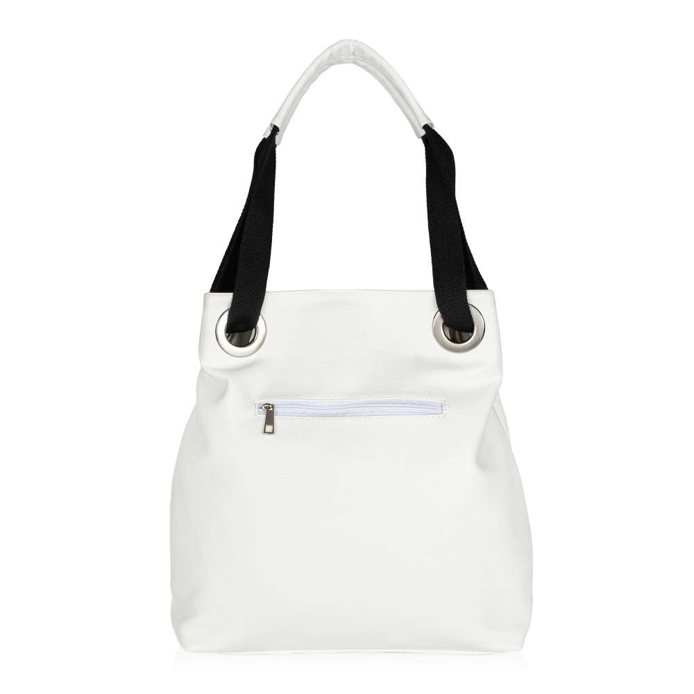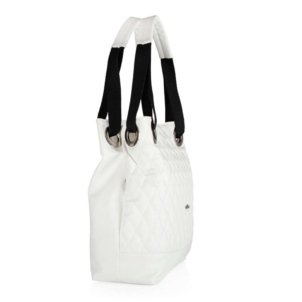 Dámská taška značky RIEKER, která Vás zaujme svým vzhledem a praktičností. Vrchní materiál je bílé barvy, zdobí jej prošití a detaily stříbrné barvy. Ze zadní strany Vás jistě potěší malá kapsička sloužící k uložení různých drobností. Kabelka má zip, po jehož rozepnutí se Vám nabízí několik dalších kapes například na mobil nebo klíče. Tento praktický model bude spolehlivým společníkem pro každodenní pochůzky. Rozměry: cca v 39 cm x š 37 cm Vnitřní uspořádání: Kabelka není dělená.