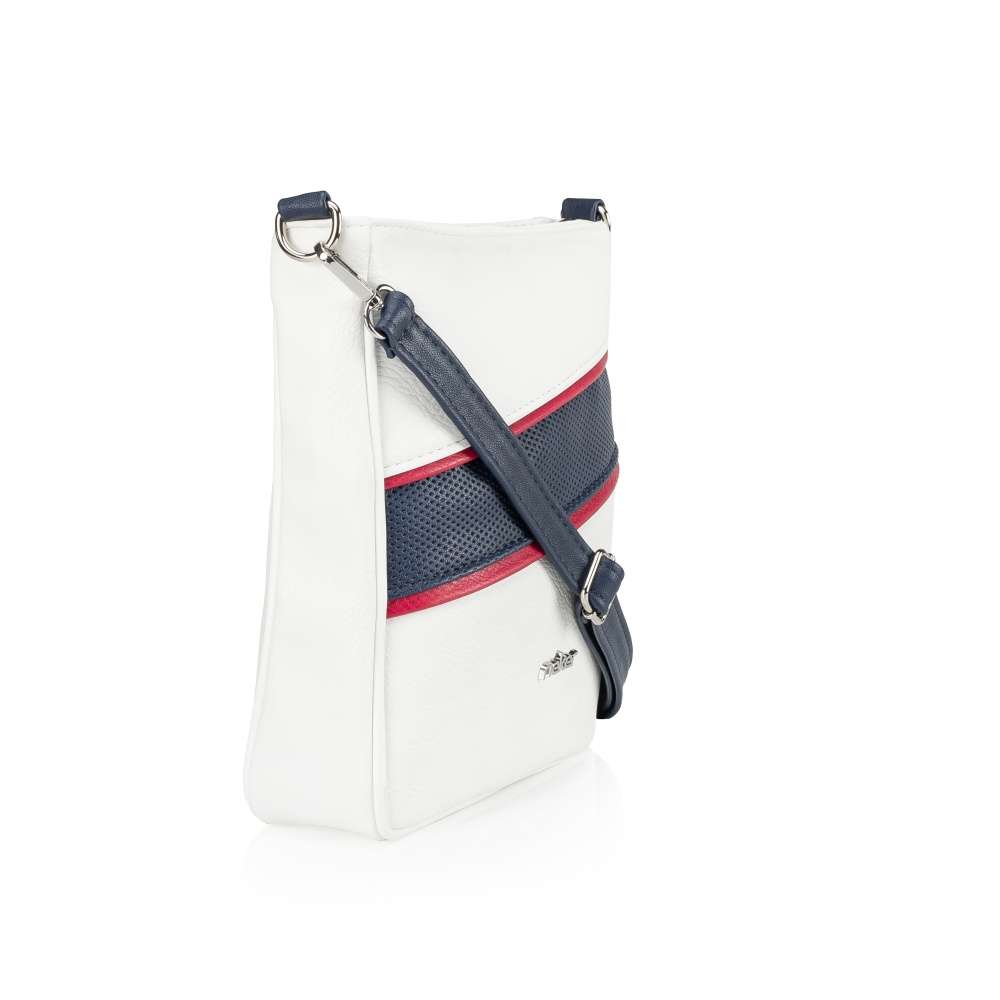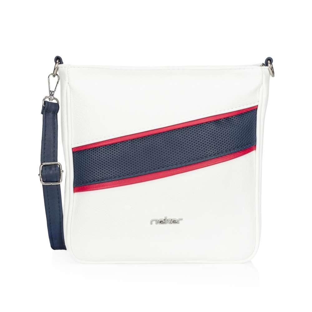 Kombinace bílé, modré a červené vytváří nepřehlédnutelný vzhled této kabelky značky Rieker a jistě potěší nejednu ženu, která se ráda cítí výjimečně. Logo značky na přední straně dozdobí celkový vzhled. Na zadní straně se nachází menší kapsa na drobnosti. Do hlavní kapsy se dostanete pomocí zipu na horním kraji, po jehož otevření se dostanete do vnitřní části, zde se nacházejí dvě malé kapsy. Do města či na schůzku s přáteli bude tento model pro Vás volbou číslo jedna. Rozměry: cca v 26 cm x š 25 cm Vnitřní uspořádání: Kabelka není dělená. Kabelka má délkově nastavitelný popruh, který lze odepnout. Maximální délka nastavitelného popruhu je cca 130 cm.