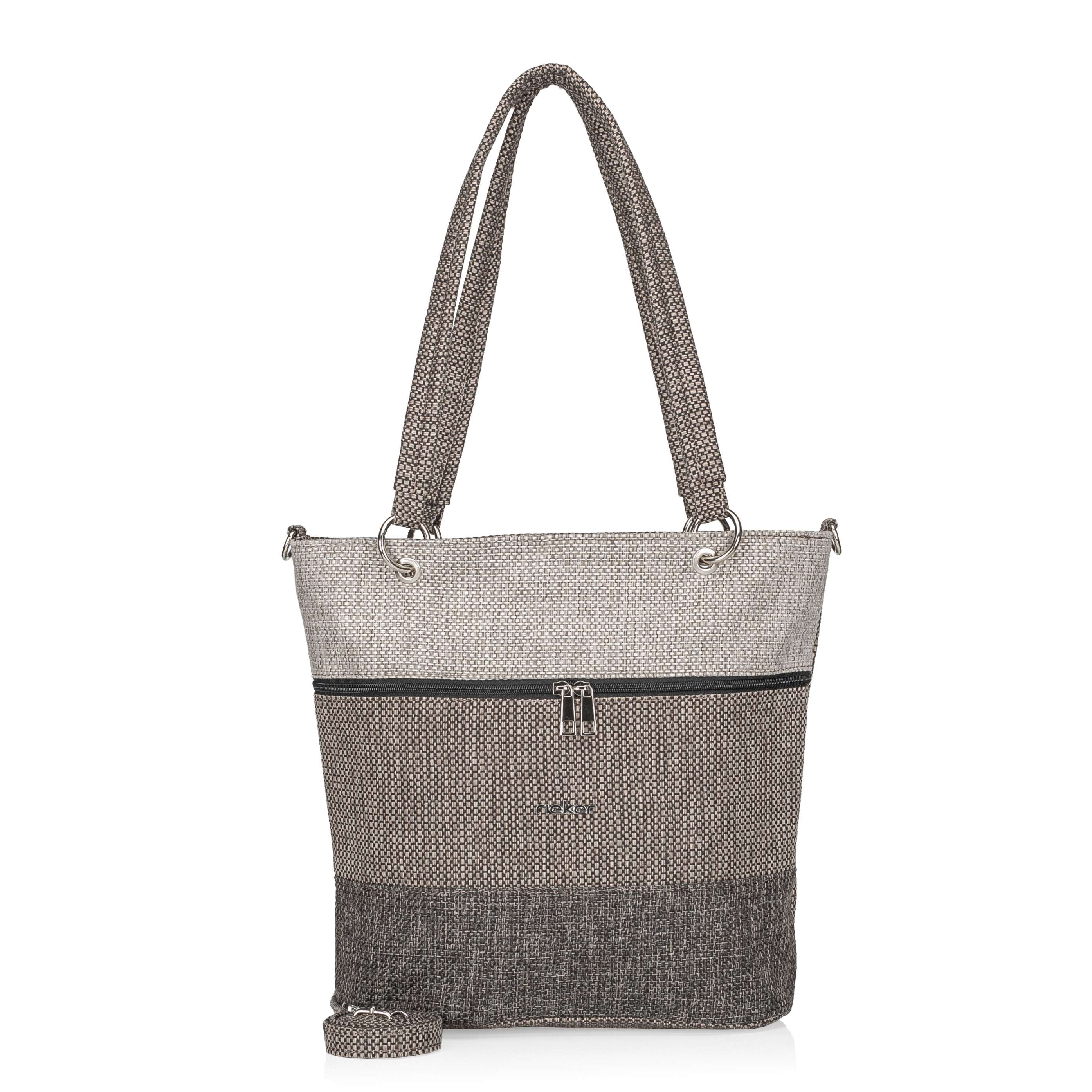 Okouzlující vzhled a příjemný materiál má tato dámská kabelka značky RIEKER, které neodolá žádná z Vás. Svršek je vyroben z textilního materiálu tří barev a ozdoben stříbrnými zipy. Pomocí zipů objevíte větší kapsu v přední části kabelky. Hlavní část kabelky v sobě skrývá další dvě malé kapsičky, a tak si můžete své nutnosti uspořádat dle svých představ. K tašce patří také délkově nastavitelný popruh. Tento kousek nesmí chybět ve vašem nákupním košíku. Rozměry: cca V 33 cm x Š 31 cm x H 14 cm Vnitřní uspořádání: kabelka není dělená. Kabelka má délkově nastavitelný popruh, který lze odepnout. Maximální délka nastavitelného popruhu je cca 120 cm.
