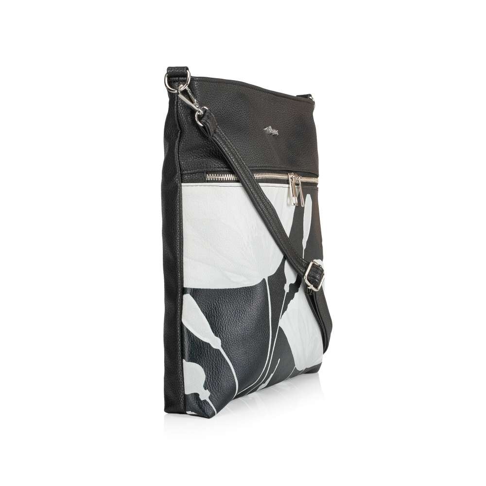 Detailní informace Vkusná dámská crossbody značky RIEKER, která bude Vaší každodenní společnicí. Svršek je zdoben potiskem vlčích máků a doplněn logem značky, a tím dodává kabelce originální vzhled. Je zde i zip uzavírající kapsičku pro uložení drobností. V tašce je dostatek úložného prostoru pro všechny nutné věci. Kapsička se nachází i na zadní straně, další dvě jsou v hlavní kapse. Kabelka bude vhodná k procházkám parkem nebo do města.