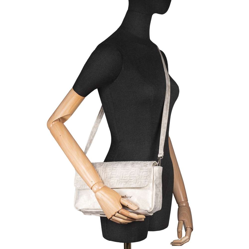 Detailní informace Tato kabelka od značky RIEKER je skutečným šperkem, jejíž obdélníkový tvar zdobí nádherný vzor, jemné odlesky a logo značky, což z ní činí nádherný módní doplněk. K uzavření kabelky slouží vrchní zip a pro maximální bezpečnost i magnetický cvok umístěný na klopě. Uvnitř naleznete dvě malé kapsy pro uložení drobností a samozřejmě zde uložíte i ostatní potřebné věci. Kabelka je vybavena nápaditým úchytem v dolní části, což usnadňuje nošení v ruce a díky odepínatelnému popruhu ji můžete nosit i přes rameno. Tento model bude dokonalým doplňkem pro běžné i slavnostní příležitosti a vždy dokonale doplní jedinečný vzhled každé z vás.