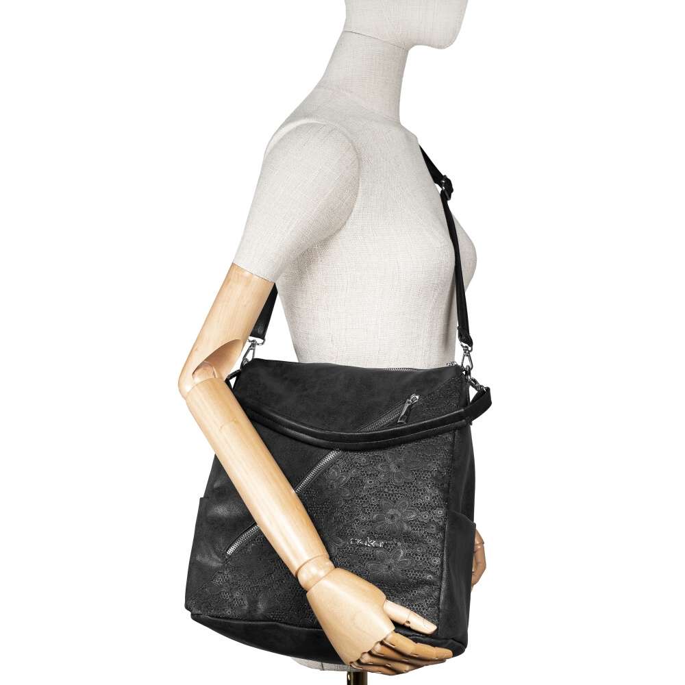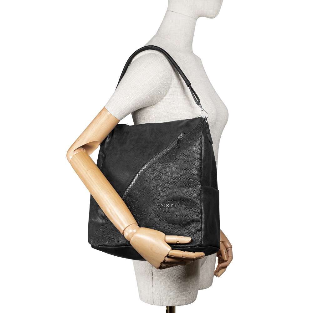 Nadčasový model značky RIEKER – spojení elegance a praktičnosti, se spoustou kapes a úložného prostoru vám nabízí dostatek místa na vše, co potřebujete a vytvoří dokonalý přehled o Vašich věcech. Svršek je zdoben květinovým potiskem, logem značky a výrazným zipem, kterým je uzavřena přední kapsa, další je na zadní straně a jako bonus jsou zde i dvě malé boční kapsy. Vrchní zip uzavírá hlavní prostor se dvěma malými kapsičkami pro jednoduchou organizaci. Díky odepínatelnému krátkému a nastavitelnému dlouhému popruhu si můžete zvolit nošení podle svých představ. Kterou variantu zvolíte jako doplněk ke každodennímu použití, ať už jedete do práce, na výlet, nebo do školy. Rozměry: cca V 33 cm x Š 31 cm x H 16 cm Vnitřní uspořádání: kabelka není dělená. Kabelka má délkově nastavitelný popruh. Maximální délka nastavitelného popruhu je cca 130 cm.