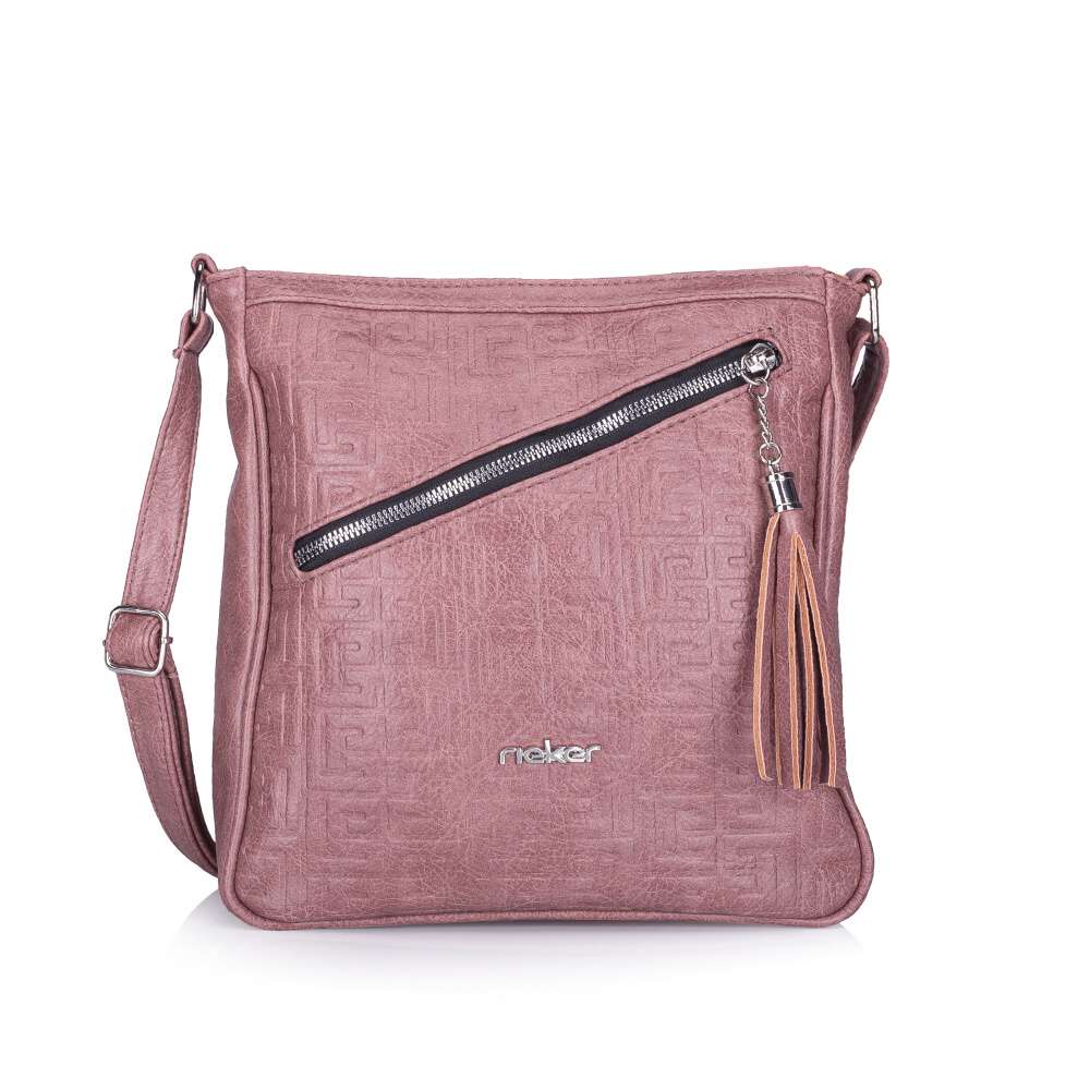Kabelka značky RIEKER spojuje moderní design a praktičnost, její vytištěný vzor na růžovém podkladu a zip přední kapsičky dodávají této kabelce osobitý a poutavý vzhled. Navíc je ozdobena logem značky, což svědčí o kvalitě a stylu. Hlavní prostor pro uložení věcí je uzavřen zipem a jsou zde i dvě malé kapsičky pro ukládání drobností. Zadní malá kapsa má kabelka pro rychlý přístup k nezbytným věcem. Nastavitelný popruh vám umožní nosit kabelku pohodlně a přizpůsobit ji vašim potřebám. Tato kabelka je ideální volbou pro ženy, které hledají kombinaci elegance a funkčnosti.