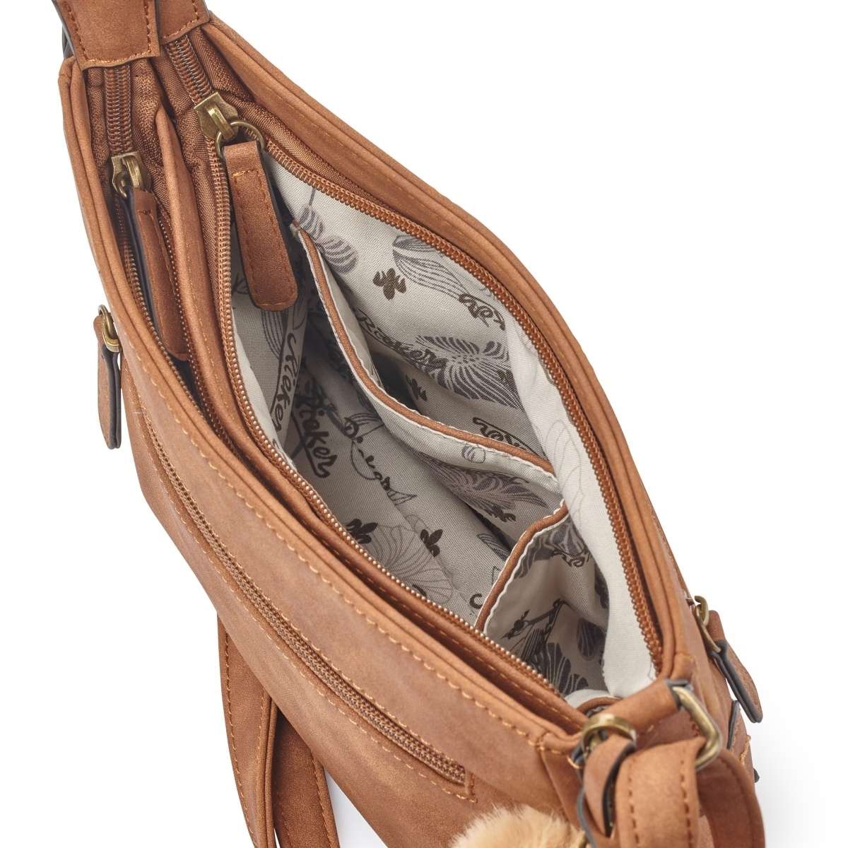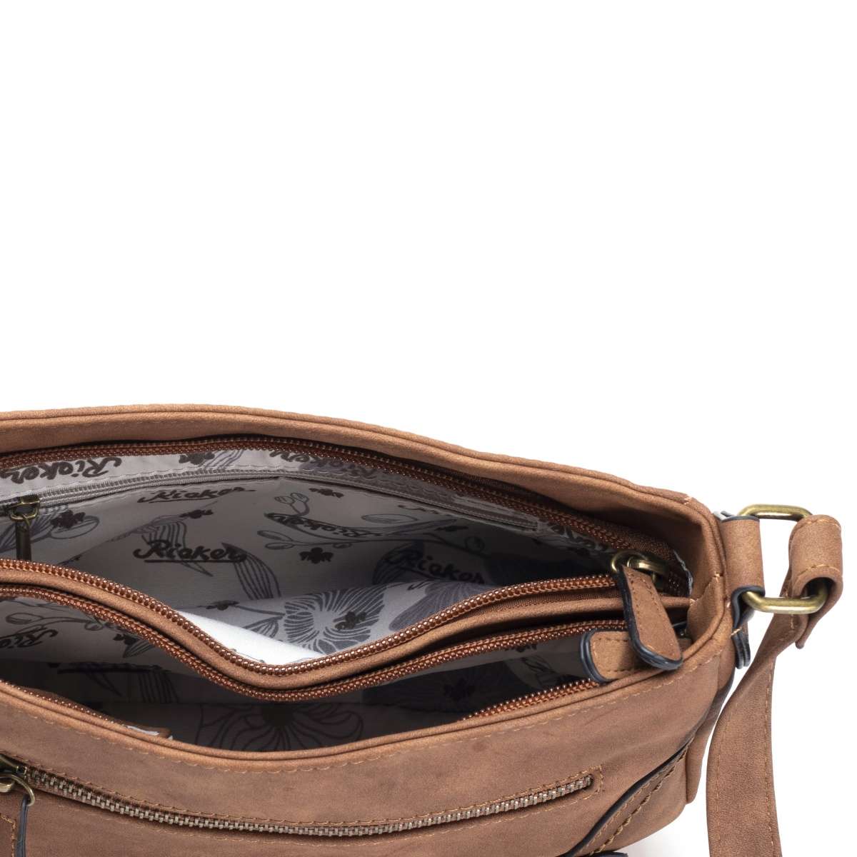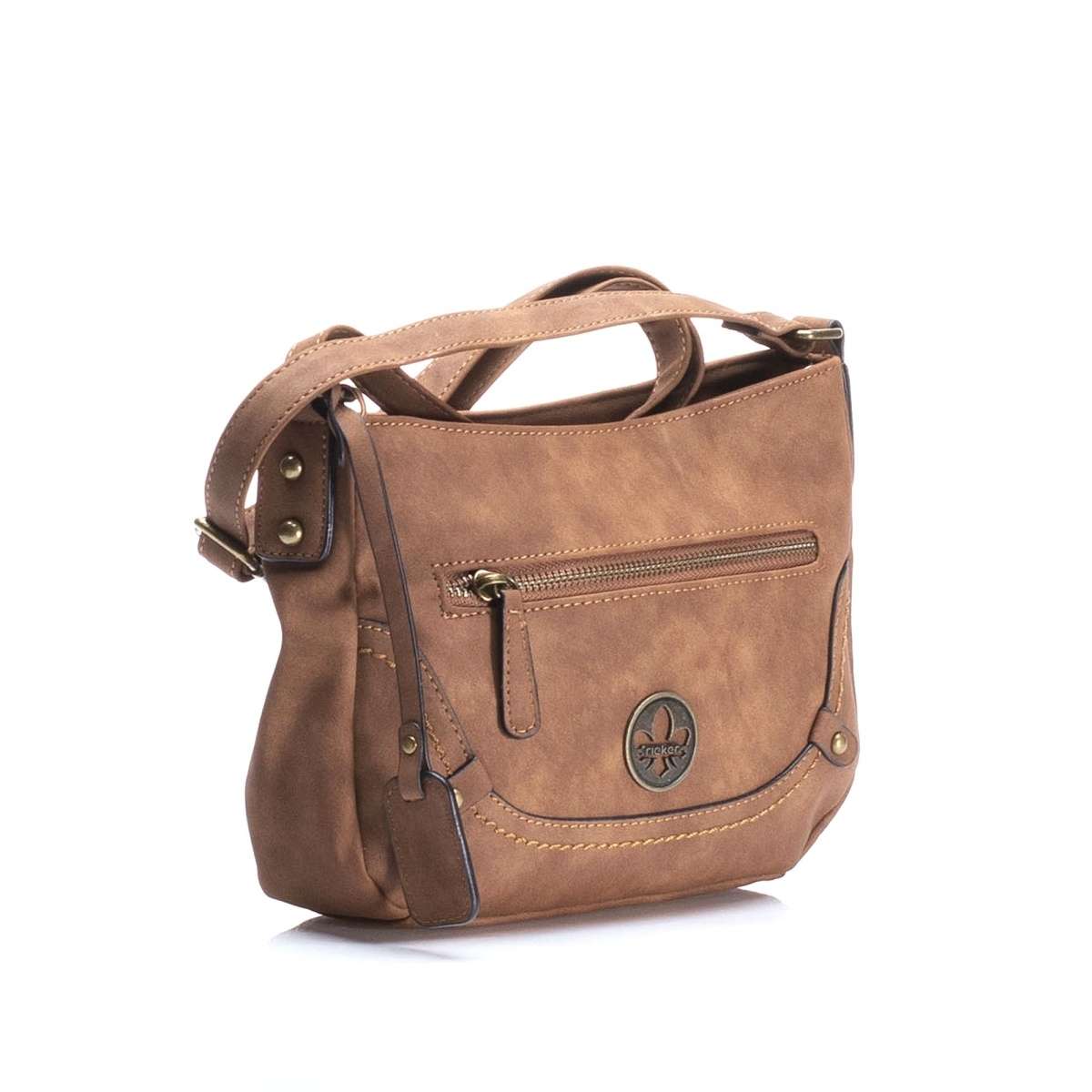Dámská kabelka RIEKER v krásné hnědé barvě s logem značky na přední straně a malou praktickou kapsičkou, kterou doplňuje plyšový odepínatelný přívěsek. Tento stylový kousek se bude skvěle hodit jak na posezení s kamarádkami, tak na cesty do práce.