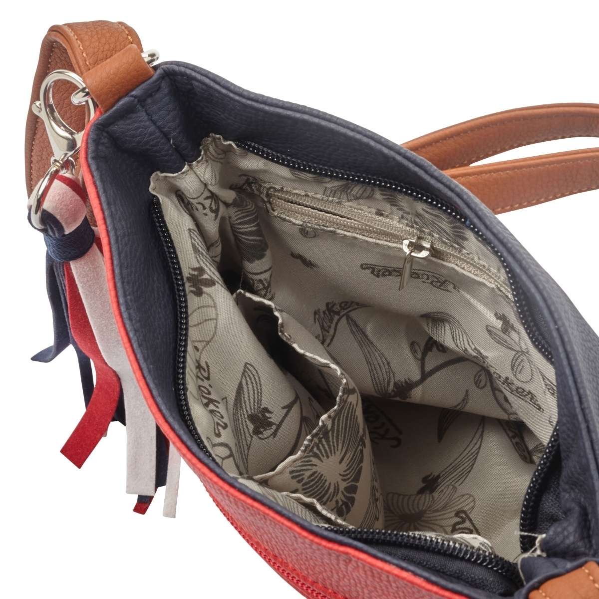 Barevná dámská kabelka od značky Rieker je ve stylu Crossbody a je obohacena malou kapsičkou na přední straně a třásňovým přívěskem, který si můžete i kdykoliv odepnout.