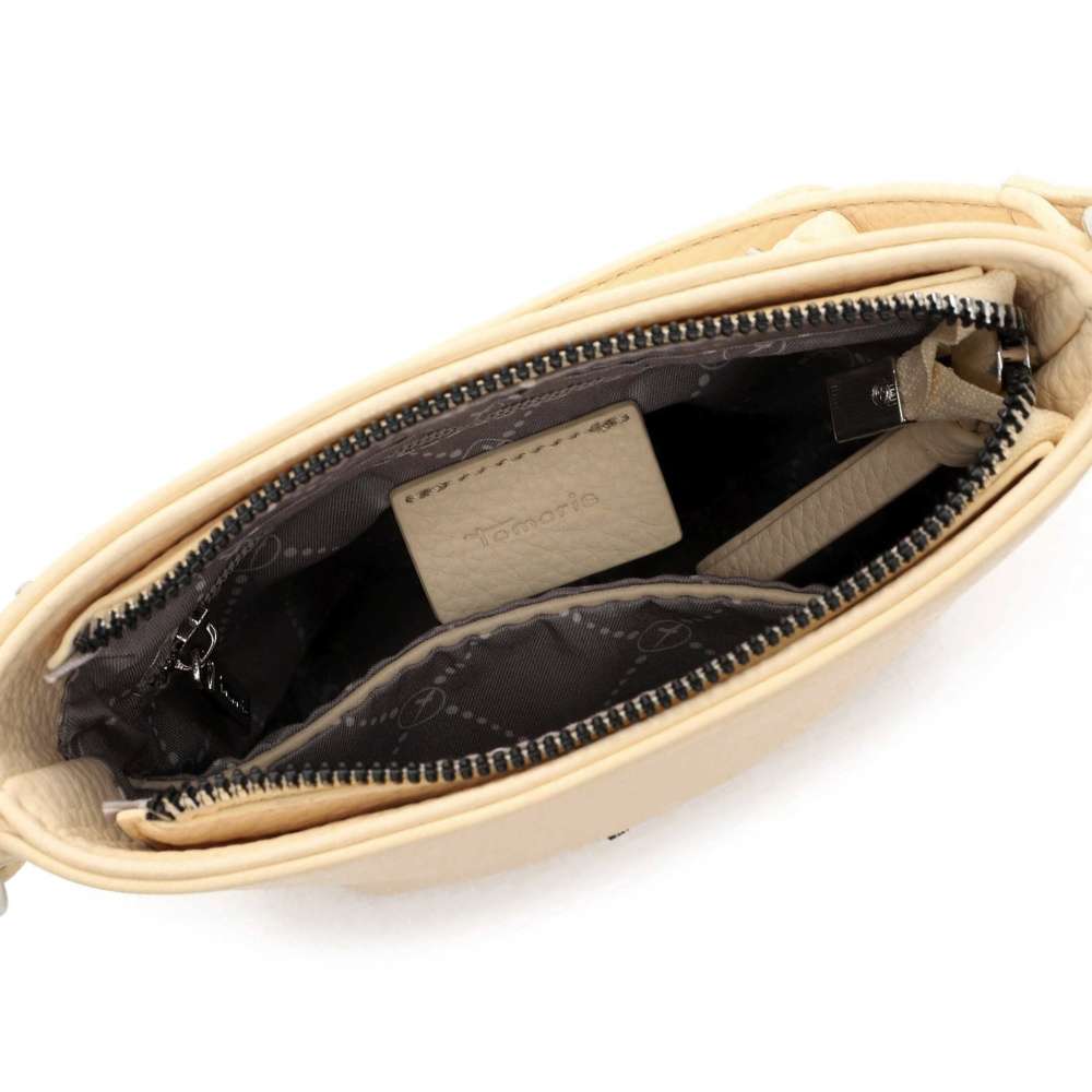 Hledáte vkusnou a jednoduchou kabelku? Potom zpozorněte! Tato dámská kabelka značky TAMARIS je zde přímo pro Vás. Na světle žlutém svršku se třpytí logo značky stříbrné barvy a jenom lehce dozdobí celkový vzhled. U horního okraje se nachází zip, po jehož rozepnutí uvnitř najdeme malé kapsičky na Vaše drobnosti. Určitě využijete i malou kapsičku na zadní části, kde budete mít věci lehce dostupné. Taštičku lze nosit přes rameno nebo přes telo, díky délkově nastavitelnému popruhu si ji můžete nastavit přesně podle Vašich představ. Tento model kabelky určitě využijete jak k formálnímu oblečení, tak k ležérním kouskům z vašeho šatníku.