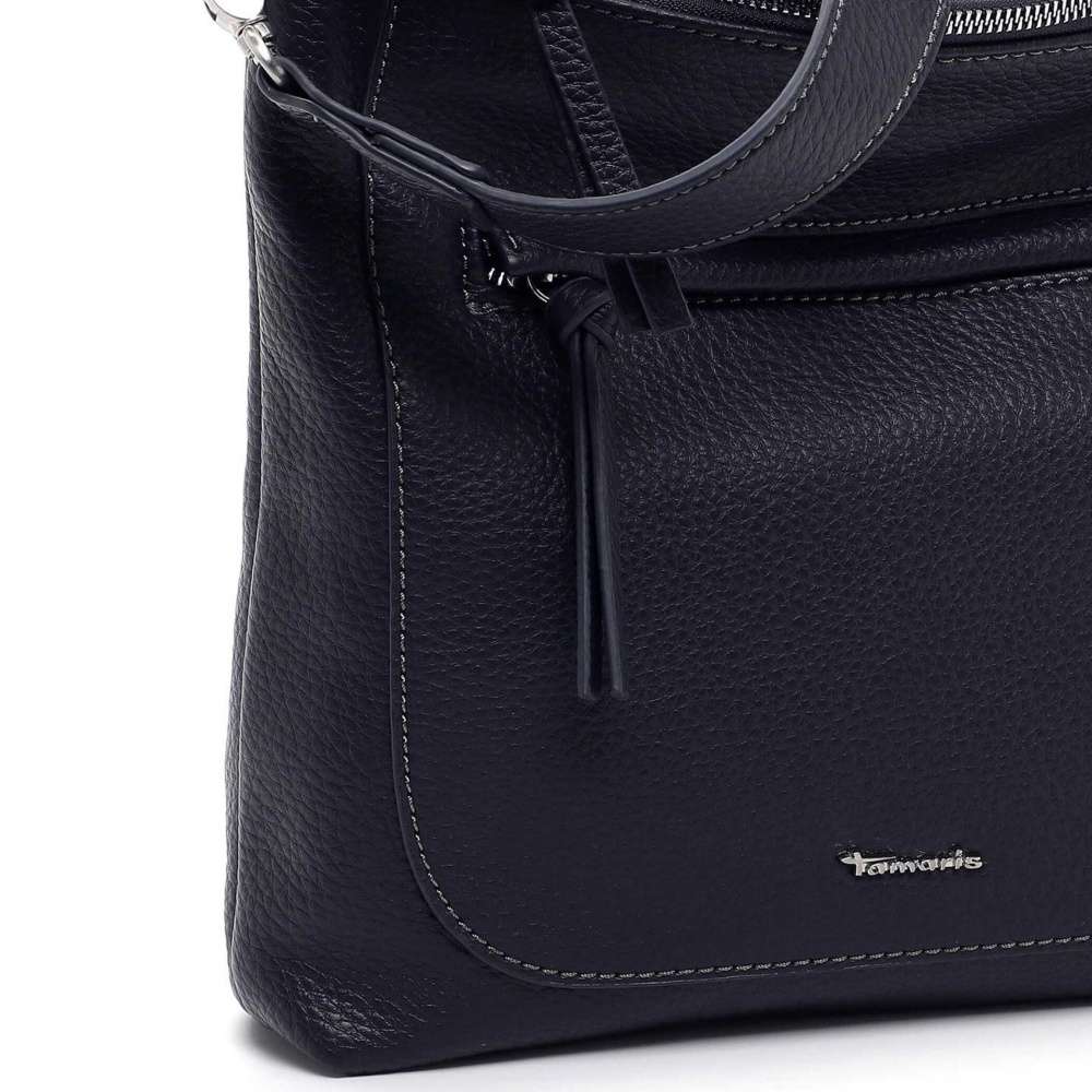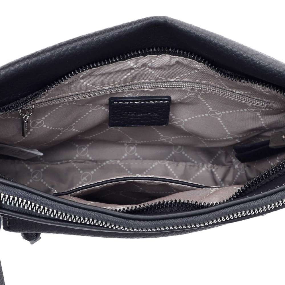 Dámskou kabelku značky TAMARIS oceníte při každodenním nošení a sladíte ji snad se všemi Vašimi outfity. Kabelka má tmavě modrý svršek ozdobený jemným logem značky a zipem, po jehož rozepnutí se otevře kapsička na Vaše drobnosti. Hlavní prostor se uzavírá pomocí zipu, uvnitř najdete další dvě malé kapsičky, z čehož jedna je na zip. Taška má dlouhý popruh, který si můžete nastavit na Vámi zvolenou délku a je odepínatelný. Tato kabelka bude skvěle vypadat s botami z naší kolekce a bude dokonalým doplňkem každého dne.