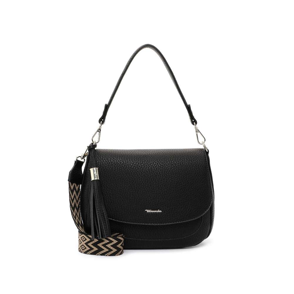 Elegantní kabelka Tamaris v nadčasové černé barvě je skvostným doplňkem pro každou příležitost. Její sofistikovaný design je doplněn o jemné logo značky, které dodává kabelce stylový nádech a výrazným prvkem je okouzlující třáseň. Po otevření kabelky se vám naskytne prostor s dvěma menšími kapsičkami pro lepší organizaci vašich věcí, přičemž jedna kapsička je umístěna i na přední části kabelky. Kabelka je vybavena dvěma odepínatelnými popruhy – kratším pro elegantní nošení a delším, nastavitelným popruhem pro komfortní nošení přes rameno nebo přes tělo, navíc má módní vzhled díky zajímavému vzoru. Tato kabelka Tamaris je perfektním doplňkem pro každodenní nošení, kombinující eleganci, praktičnost a moderní design. Rozměry: cca V 20 cm x Š 27 cm x H 8 cm Vnitřní uspořádání: kabelka není dělená Kabelka má délkově nastavitelný popruh, který lze odepnout.