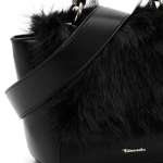 Detailní informace Tato skvostná kabelka Tamaris je láskou na první pohled a dokonale zdůrazní váš osobitý styl. Výrazným prvkem je kožešinová dekorace na vrchní části, která se uzavírá dvěma magnetickými klipy. Pod touto dekorací najdete zip, který zajišťuje hlavní úložný prostor vybavený dvěma menšími kapsičkami pro přehledné uložení drobností. Na zadní straně je umístěna další kapsička pro rychlý přístup k často používaným věcem. Kabelku můžete nosit v ruce díky krátkému úchytu, nebo využít odepínatelný dlouhý popruh pro pohodlné nošení přes rameno. Kabelka v unikátním provedení je ideální volba pro každou příležitost, kdy chcete zazářit a ukázat svůj osobitý vkus.