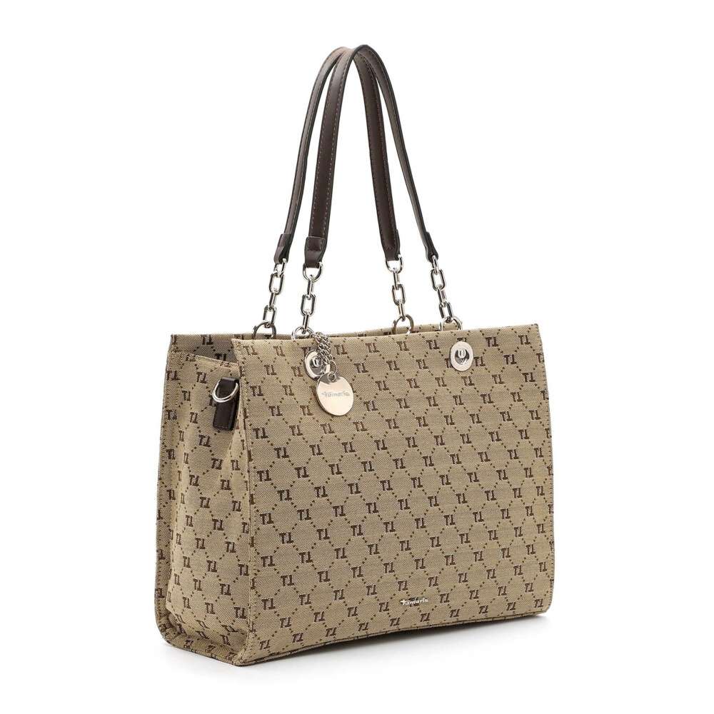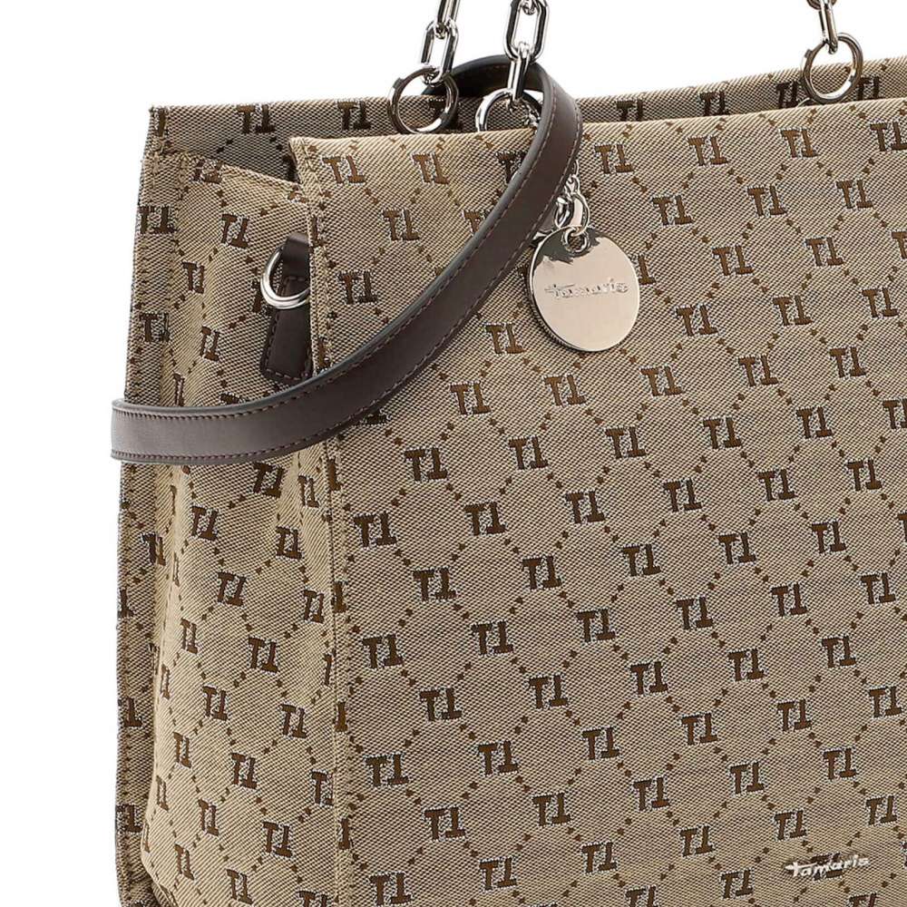 Půvab této kabelky Tamaris je podtržen stylovým potiskem písmene "T" a logem značky Tamaris na přední části, dekorační visačka rovněž nese logo, čímž podtrhuje exkluzivitu designu. Na zadní straně najdete malou kapsičku, ideální pro uložení drobností. Hlavní prostor, uzavíraný zipem, poskytuje dostatek místa a obsahuje dvě menší kapsičky pro lepší organizaci. Působivé provedení úchytu kratších popruhů dodávají kabelce elegantní vzhled, zatímco odepínatelný a délkově nastavitelný popruh umožňuje variabilní nošení podle vašich preferencí. Tento kousek je ideální pro každou příležitost, kdy chcete zazářit. Rozměry: cca V 29 cm x Š 35 cm x H 16 cm Vnitřní uspořádání: kabelka není dělená Kabelka má délkově nastavitelný popruh, který lze odepnout. Maximální délka nastavitelného popruhu je cca 140 cm.