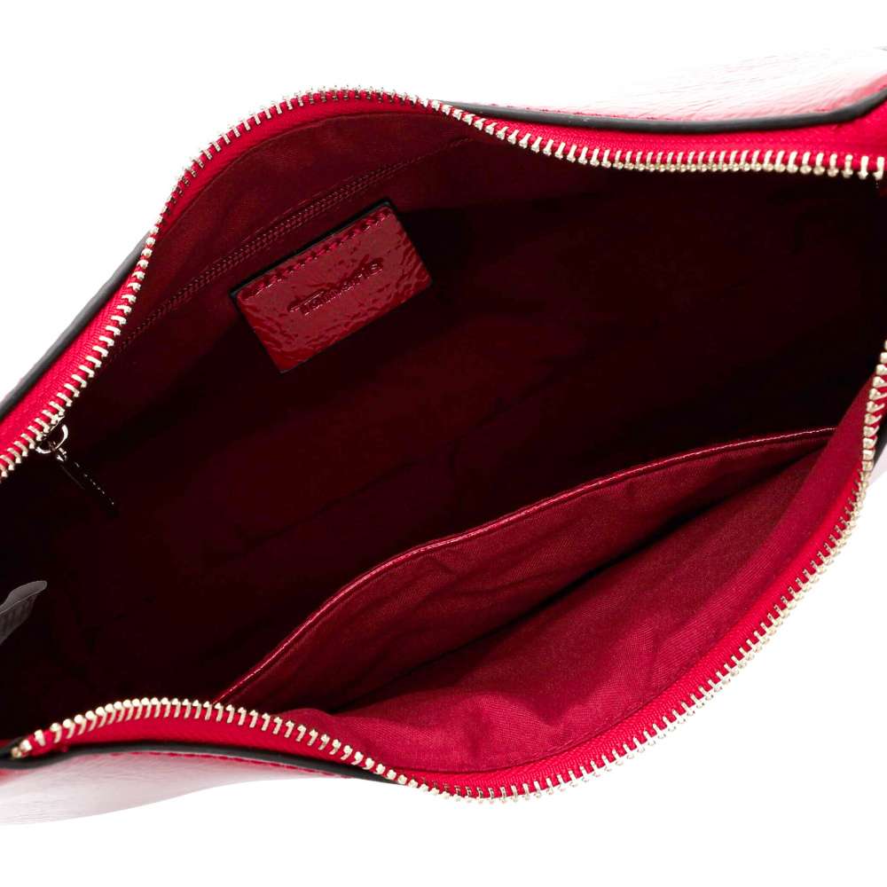 Detailní informace Styl a praktičnost v jednom – přesně to nabízí tato trendová kabelka Tamaris, která okamžitě upoutá svou originalitou. Lesklý červený svršek působí luxusně, v kombinaci se zlatým logem značky a bočními minimalistickými aplikacemi vytváří módní skvost. Hlavní úložný prostor je zabezpečen vrchním zipem, a kromě dostatku místa zde naleznete i dvě menší vnitřní kapsičky, které zajistí dokonalý přehled o vašich osobních věcech. Součástí jsou dva variabilní popruhy – kratší pevný je zdobený kulatými kovovými prvky a působí velmi efektně při nošení, zatímco delší nastavitelný a odnímatelný popruh umožní pohodlné nošení přes rameno či křížem přes tělo. Díky této variabilitě si kabelku snadno přizpůsobíte každé příležitosti i svému stylu. Tento model značky Tamaris skvěle kombinuje moderní design s praktickými prvky, a proto se stane ideálním společníkem jak pro běžné denní nošení, tak i pro speciální příležitosti.