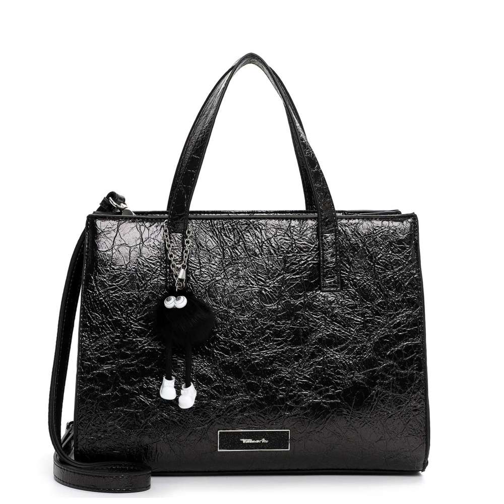 Černá kabelka značky Tamaris není jen klasickým kouskem – vyniká svým působivým provedením svršku s jemným leskem, který okamžitě upoutá pozornost a dodává kabelce moderní a luxusní vzhled. Přední část zdobí decentní logo značky stříbrné barvy, které podtrhuje její kvalitu a prestiž. Kabelka je doplněna hravým, odepínatelným přívěskem, který jí dodává osobitý styl a mladistvý akcent. Hlavní prostor kabelky je uzavíratelný zipem a po jeho otevření se odhalí důkladně promyšlené vnitřní uspořádání. Kabelka je rozdělena středovou kapsou, která vytváří dvě samostatné části, přičemž v každé z nich se nachází malá vnitřní kapsička určená pro drobnosti. Pro rychlý přístup je navíc kabelka vybavena zadní kapsou na zip, kde můžete uložit věci, které potřebujete mít okamžitě po ruce. Kabelka nabízí variabilitu nošení – dva pevné krátké úchyty umožňují pohodlné nošení v ruce a délkově nastavitelný odepínatelný popruh zaručuje komfortní nošení přes rameno. Díky této flexibilitě si kabelku přizpůsobíte přesně podle svých potřeb, což z ní činí ideálního společníka do města, do práce i na volnočasové aktivity. Tato kabelka v klasické černé barvě dokazuje, že nadčasový design může působit vždy moderně a atraktivně. Rozměry: cca V 25 cm x Š 32 cm x H 13 cm Vnitřní uspořádání: kabelka je dělená Kabelka má délkově nastavitelný popruh, který lze odepnout.