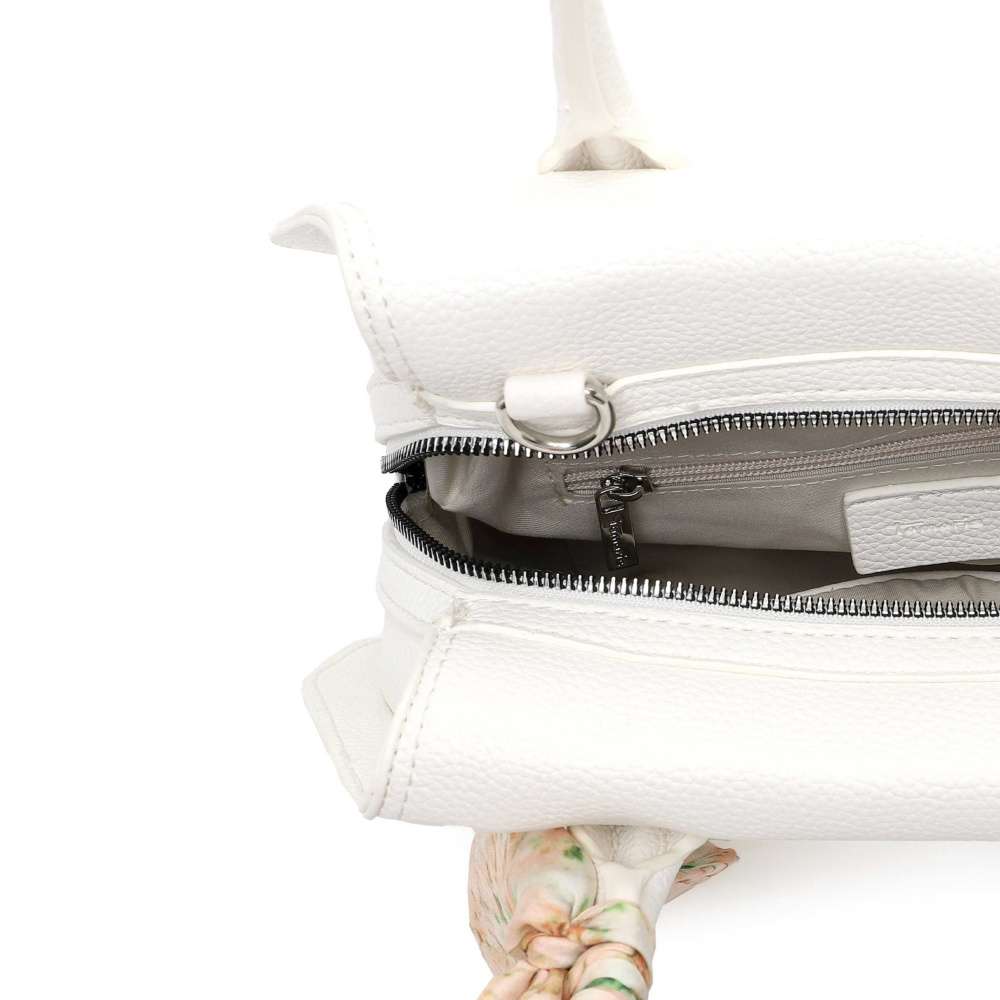 Nechte se unést půvabem kabelky Tamaris, která dokonale spojuje nadčasovou eleganci s praktickou funkčností. Bílý svršek je doplněn jemným stříbrným logem značky a půvabný textilní šátek dodává kabelce nádech jedinečnosti a ženského šarmu. Promyšlený design zajišťuje dokonalý pořádek, hlavní prostor s menšími přihrádkami poskytuje místo pro vše potřebné, takže už nikdy nebudete ztrácet čas hledáním. Variabilitu nošení zajišťuje odnímatelný a délkově nastavitelný popruh, který umožní kabelku nosit pohodlně přes rameno, zatímco pevné úchyty poskytují elegantní možnost nošení v ruce. Tato kabelka Tamaris se stane vaším spolehlivým a stylovým společníkem, který doplní každý outfit, podtrhne vaši ženskost a přinese radost při každé příležitosti.