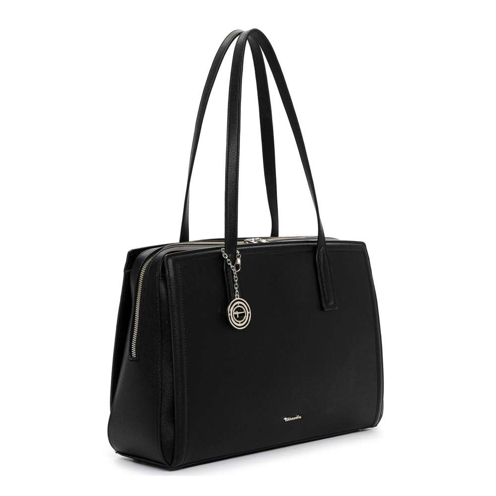 Tato kabelka Tamaris v černé barvě je opravdovým klenotem pro každou ženu, která chce spojit nadčasový styl s praktičností. Logo značky stříbrné barvy a odnímatelná visačka jí dodávají jedinečnost vzhledu. Kabelka je promyšleně rozdělena do tří samostatných oddílů – dva boční se snadno uzavírají magnetickým klipem a středová část zipem. Hlavní prostor je prostorný a dvě menší kapsičky uvnitř zajistí, že všechny vaše drobnosti budou perfektně uspořádané. Dva pevné popruhy zajišťují pohodlné nošení přes rameno. Tento model TAMARIS je dokonalým spojením elegance, funkčnosti a ženského šarmu – kabelka, která doplní každý outfit a stane se vaším spolehlivým společníkem při každodenních příležitostech.