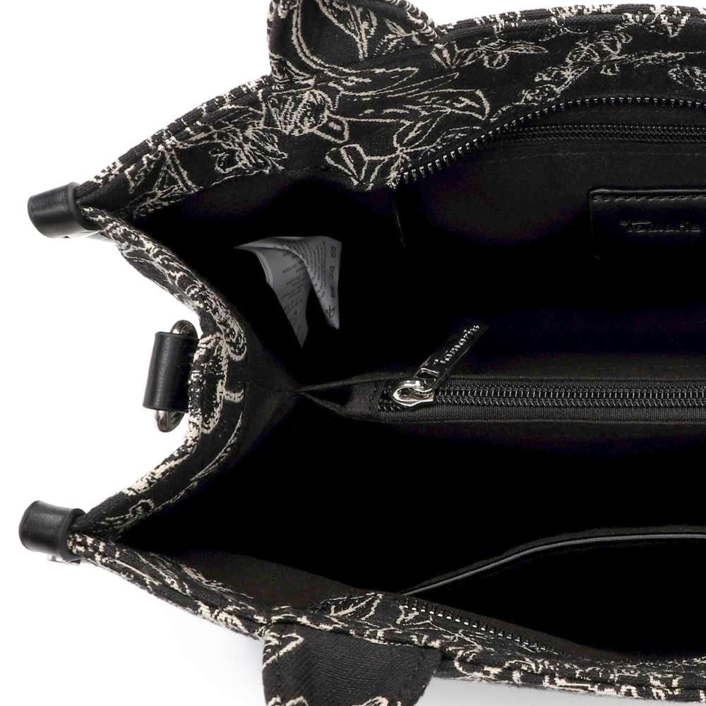 Jako opravdové umělecké dílo působí kabelka značky Tamaris, která zaujme unikátním dekorem vzoru a minimalistickým logem značky. Každý detail byl pečlivě promyšlen – vrchní zip odkrývá prostorný interiér, rozdělený středovou kapsou, a v každé části najdete menší kapsičky, které umožňují bezpečné a přehledné uložení vašich osobních věcí. Kabelka vyniká variabilitou nošení, díky dvěma krátkým úchytům ji můžete pohodlně držet v ruce, nebo využít odnímatelný a délkově nastavitelný popruh pro nošení přes rameno. Kabelka Tamaris je symbolem elegance, funkčnosti a módního vkusu, který s vámi prožije každý den s noblesou a šarmem.