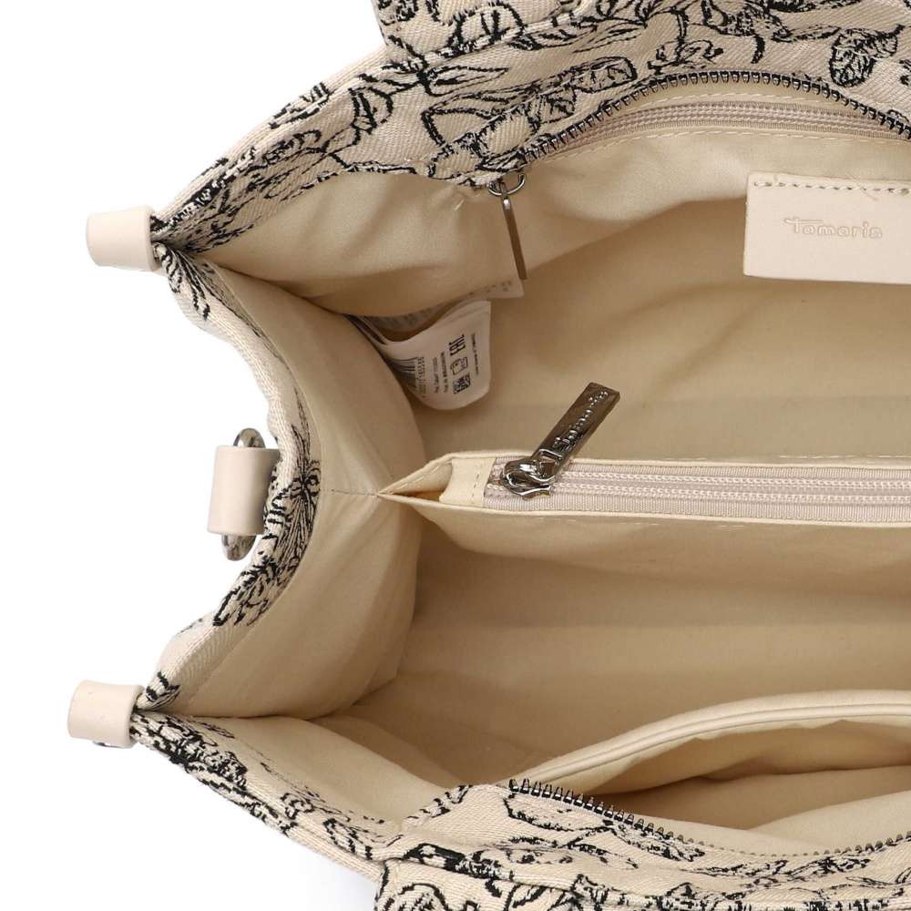 Jako opravdové umělecké dílo působí kabelka značky Tamaris, která zaujme unikátním dekorem vzoru a minimalistickým logem značky. Každý detail byl pečlivě promyšlen – vrchní zip odkrývá prostorný interiér, rozdělený středovou kapsou, a v každé části najdete menší kapsičky, které umožňují bezpečné a přehledné uložení vašich osobních věcí. Kabelka vyniká variabilitou nošení, díky dvěma krátkým úchytům ji můžete pohodlně držet v ruce, nebo využít odnímatelný a délkově nastavitelný popruh pro nošení přes rameno. Kabelka Tamaris je symbolem elegance, funkčnosti a módního vkusu, který s vámi prožije každý den s noblesou a šarmem.