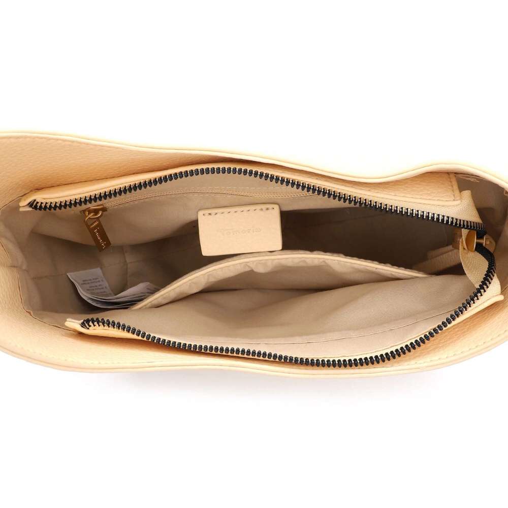 Sofistikovaný půvab kabelky Tamaris lehce zapadne do vašeho šatníku jako elegantní a nadčasový doplněk. Působivé linie tvaru kabelky a jemné zlaté logo značky podtrhují její vybraný charakter, který spojuje klasickou eleganci s moderním stylem. Hlavní prostor, uzavíraný zipem, skrývá dvě menší kapsičky pro přehledné uspořádání vašich nezbytností. Další menší kapsička na zadní straně umožňuje rychlý a diskrétní přístup k drobnostem, které chcete mít vždy po ruce. Styl nošení je variabilní – kabelku můžete nosit s pevným popruhem pro elegantní vzhled a lze ho nastavit s působivými prvky v boční části, nebo využít odnímatelný a délkově nastavitelný popruh pro ležérnější styl. Nenucená elegance kabelky od značky Tamaris podtrhne váš styl každý den, skvěle doplní pracovní outfit i ležérní kombinaci na volný čas.