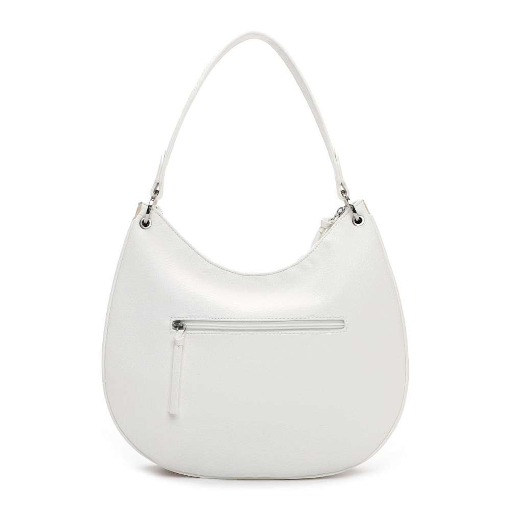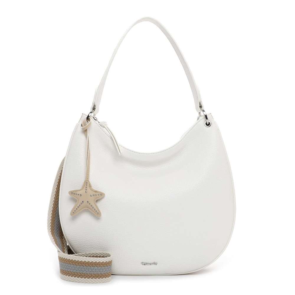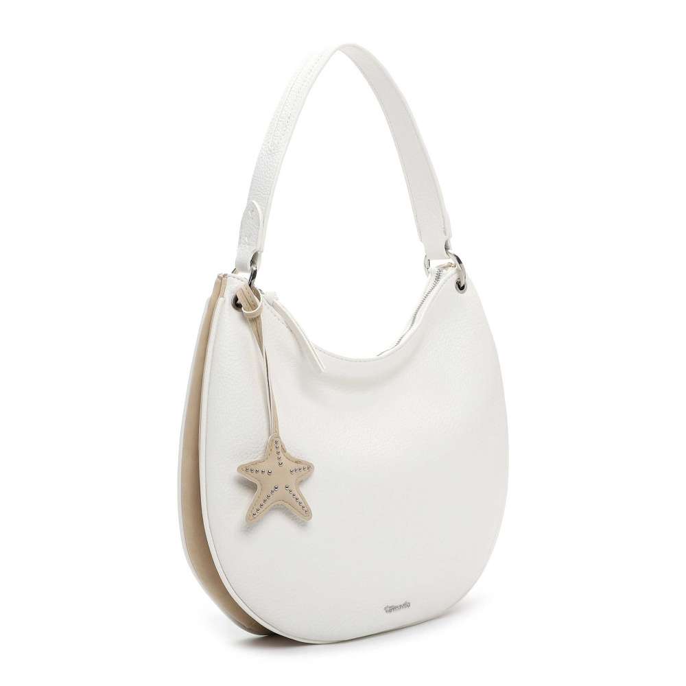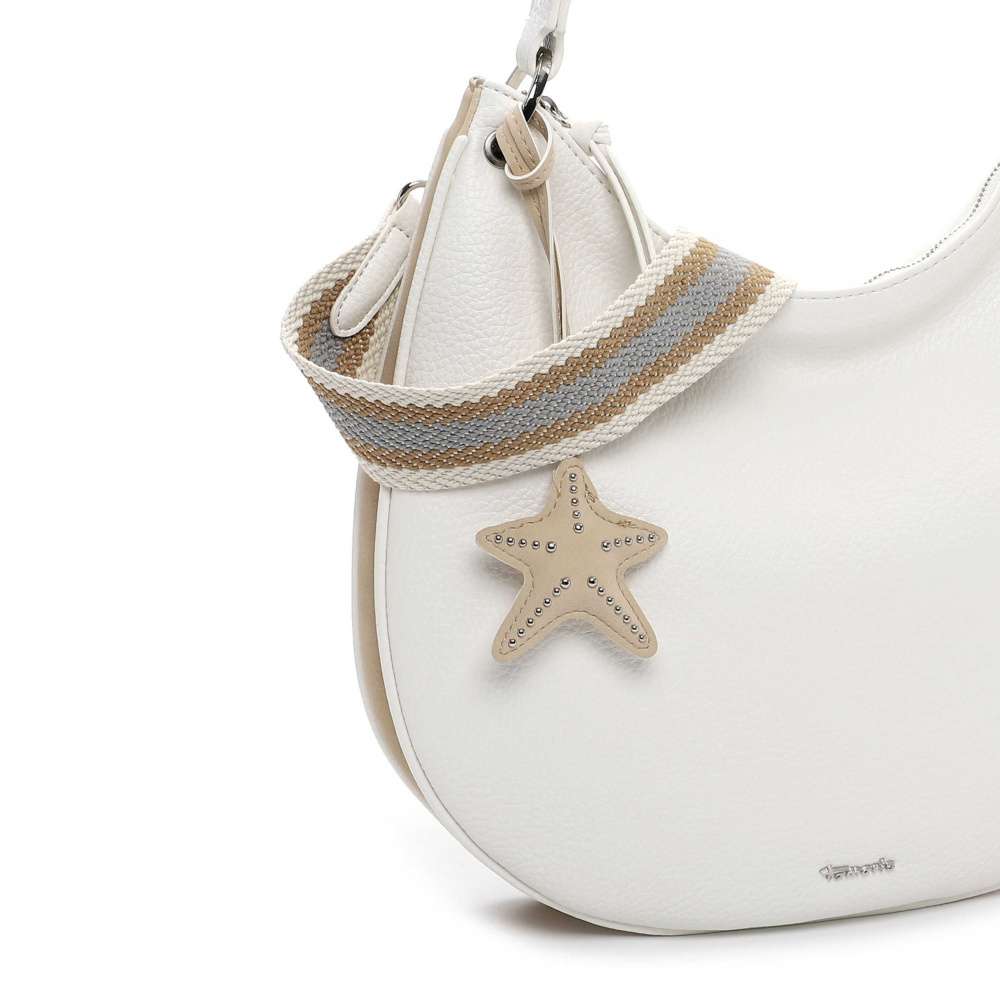 Sofistikovaný půvab kabelky Tamaris lehce zapadne do vašeho šatníku a stane se elegantním doplňkem každého outfitu. Bílý svršek zdobí stříbrné logo, které podtrhuje nadčasovou eleganci kabelky, zatímco výrazná hvězdicová aplikace přidává hravý, neotřelý detail a jedinečný šarm. Hlavní prostor uzavíraný zipem skrývá dvě menší kapsičky, které umožňují bezpečné a přehledné uspořádání vašich nezbytností, a zadní menší kapsička poskytuje rychlý a diskrétní přístup k drobnostem. Styl nošení je variabilní – kabelku můžete nosit elegantně s pevným popruhem, nebo využít délkově nastavitelný odnímatelný popruh, který přizpůsobíte k dokonalému pohodlí, přičemž kontrast jeho barevného provedení dodává kabelce módní vzhled. Kabelka Tamaris je symbolem stylu a elegance, který vás provází každý den s noblesou a sebevědomím.