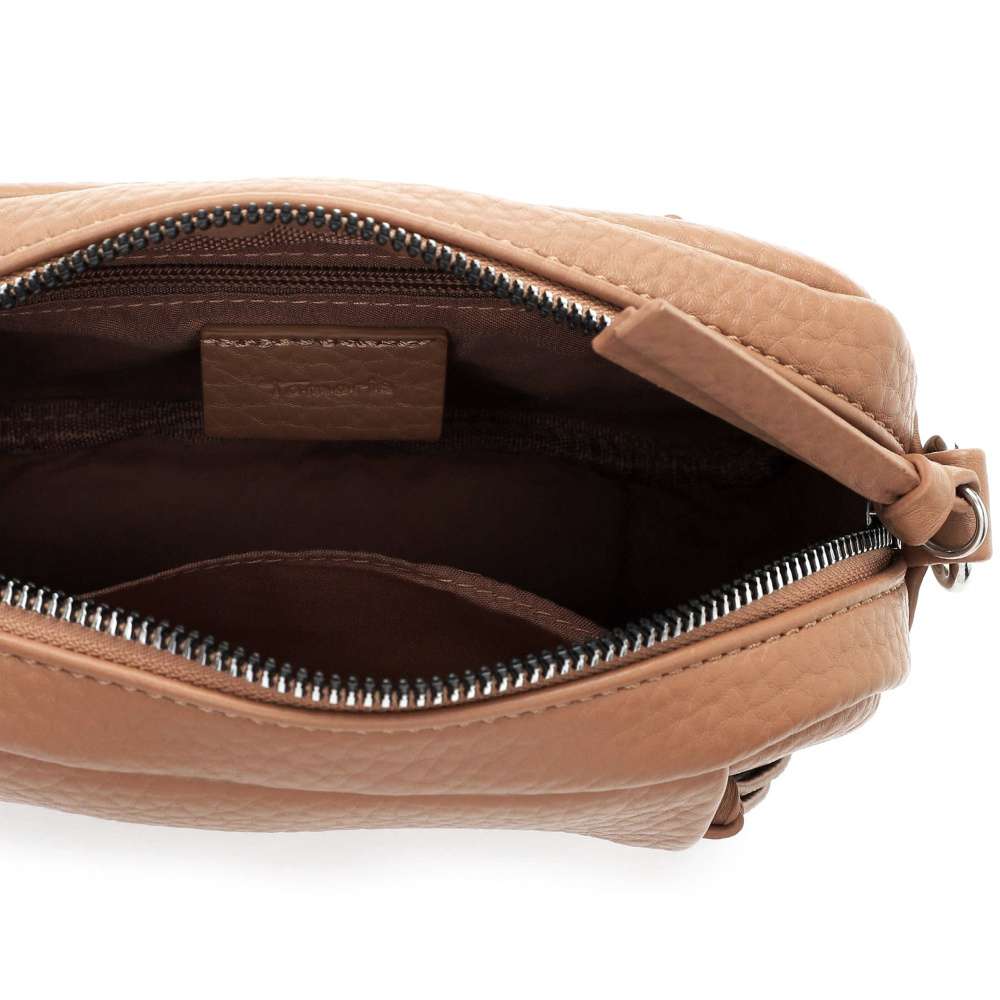Objevte kabelku Tamaris – kousek, který okamžitě zaujme a stane se vaším nepostradatelným společníkem. Svršek v univerzálním odstínu působí nadčasově a dekoruje ho logo značky stříbrné barvy. Roztomilá visačka s medvídkem je malý detail hravosti, který vás každý den rozveselí. Praktická kabelka s promyšleným designem nabízí dokonalý pořádek: přední kapsička elegantně zasazená do předního dílu a zadní kapsička pojmou všechny drobnosti, které chcete mít po ruce. Vrchní zip odhalí interiér vybavený menšími přihrádkami – každý drobný detail má své místo, takže už nikdy nebudete ztrácet čas hledáním. Délkově nastavitelný popruh je odepínatelný a umožní kabelku nosit přesně tak, jak právě potřebujete – pohodlně přes rameno nebo trendy přes tělo. Navíc svým atraktivním vzhledem dotváří jedinečnost této kabelky. Každý okamžik s touto kabelkou je radostí – ať už vyrážíte do práce, na nákupy, nebo na večerní procházku městem.