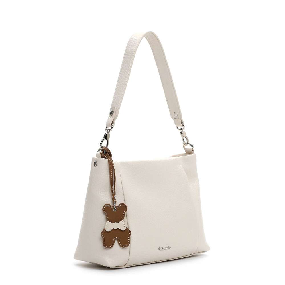 Nechte se okouzlit kabelkou Tamaris, která je stvořená pro ženy milující nadčasový půvab v kombinaci s praktickou funkčností. Svršek v béžovém odstínu zdobí stříbrné logo značky a milým překvapením je roztomilá visačka s medvídkem, která dodává kabelce nádech hravosti. Praktická kabelka s promyšleným designem nabízí dokonalý pořádek, přední kapsička elegantně zasazená do předního dílu a zadní kapsička pojmou všechny drobnosti, které chcete mít po ruce. Vrchní zip odhalí interiér vybavený menšími přihrádkami – každý drobný detail má své místo, takže už nikdy nebudete ztrácet čas hledáním. Variabilitu v nošení i stylu nabídnou dva odepínatelné popruh, jeden pevný pro elegantní vzhled a délkově nastavitelný popruh umožní kabelku nosit přesně tak, jak právě potřebujete – pohodlně přes rameno nebo trendy přes tělo. Navíc svým atraktivním vzhledem dotváří jedinečnost této kabelky. Ať už spěcháte do práce, vyrážíte za přáteli nebo si užíváte večerní atmosféru města, tato kabelka bude vaším stylovým a spolehlivým partnerem.