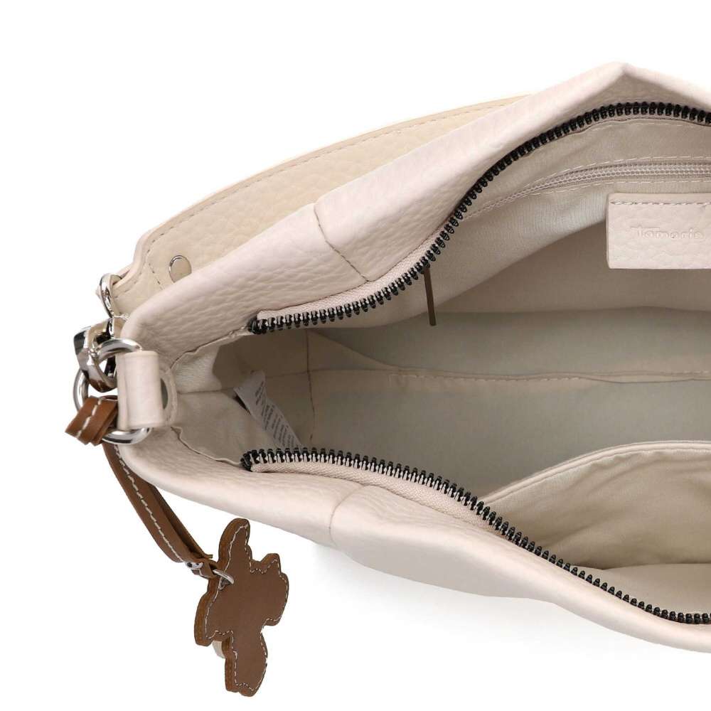 Nechte se okouzlit kabelkou Tamaris, která je stvořená pro ženy milující nadčasový půvab v kombinaci s praktickou funkčností. Svršek v béžovém odstínu zdobí stříbrné logo značky a milým překvapením je roztomilá visačka s medvídkem, která dodává kabelce nádech hravosti. Praktická kabelka s promyšleným designem nabízí dokonalý pořádek, přední kapsička elegantně zasazená do předního dílu a zadní kapsička pojmou všechny drobnosti, které chcete mít po ruce. Vrchní zip odhalí interiér vybavený menšími přihrádkami – každý drobný detail má své místo, takže už nikdy nebudete ztrácet čas hledáním. Variabilitu v nošení i stylu nabídnou dva odepínatelné popruh, jeden pevný pro elegantní vzhled a délkově nastavitelný popruh umožní kabelku nosit přesně tak, jak právě potřebujete – pohodlně přes rameno nebo trendy přes tělo. Navíc svým atraktivním vzhledem dotváří jedinečnost této kabelky. Ať už spěcháte do práce, vyrážíte za přáteli nebo si užíváte večerní atmosféru města, tato kabelka bude vaším stylovým a spolehlivým partnerem.