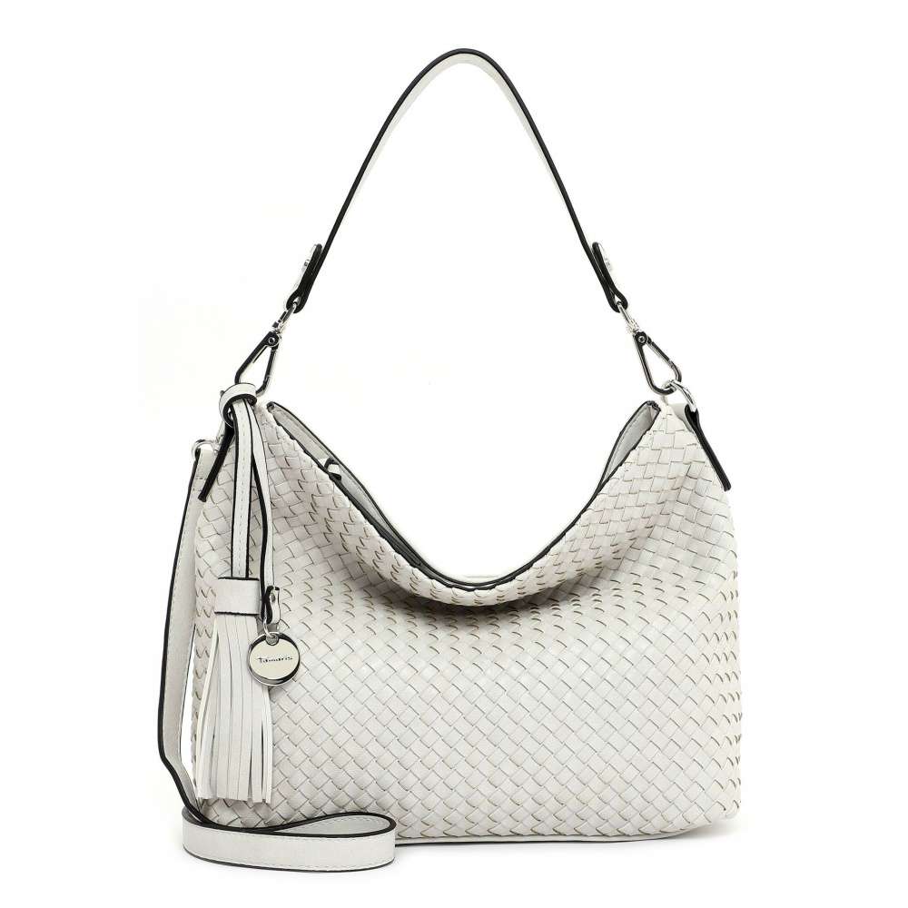 Proplétaný svršek je ozdoben třásní a logem značky TAMARIS na přední straně.