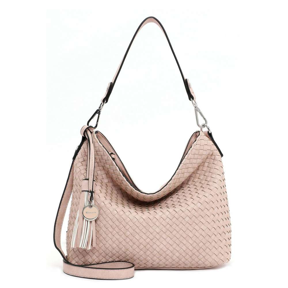 Proplétaný svršek je ozdoben třásní a logem značky TAMARIS na přední straně.