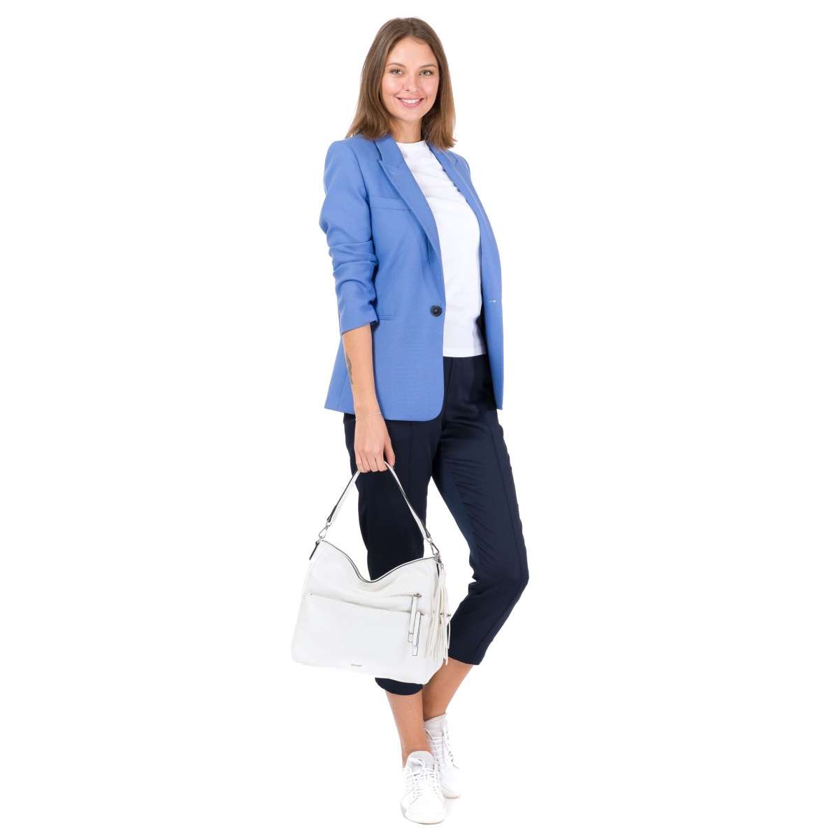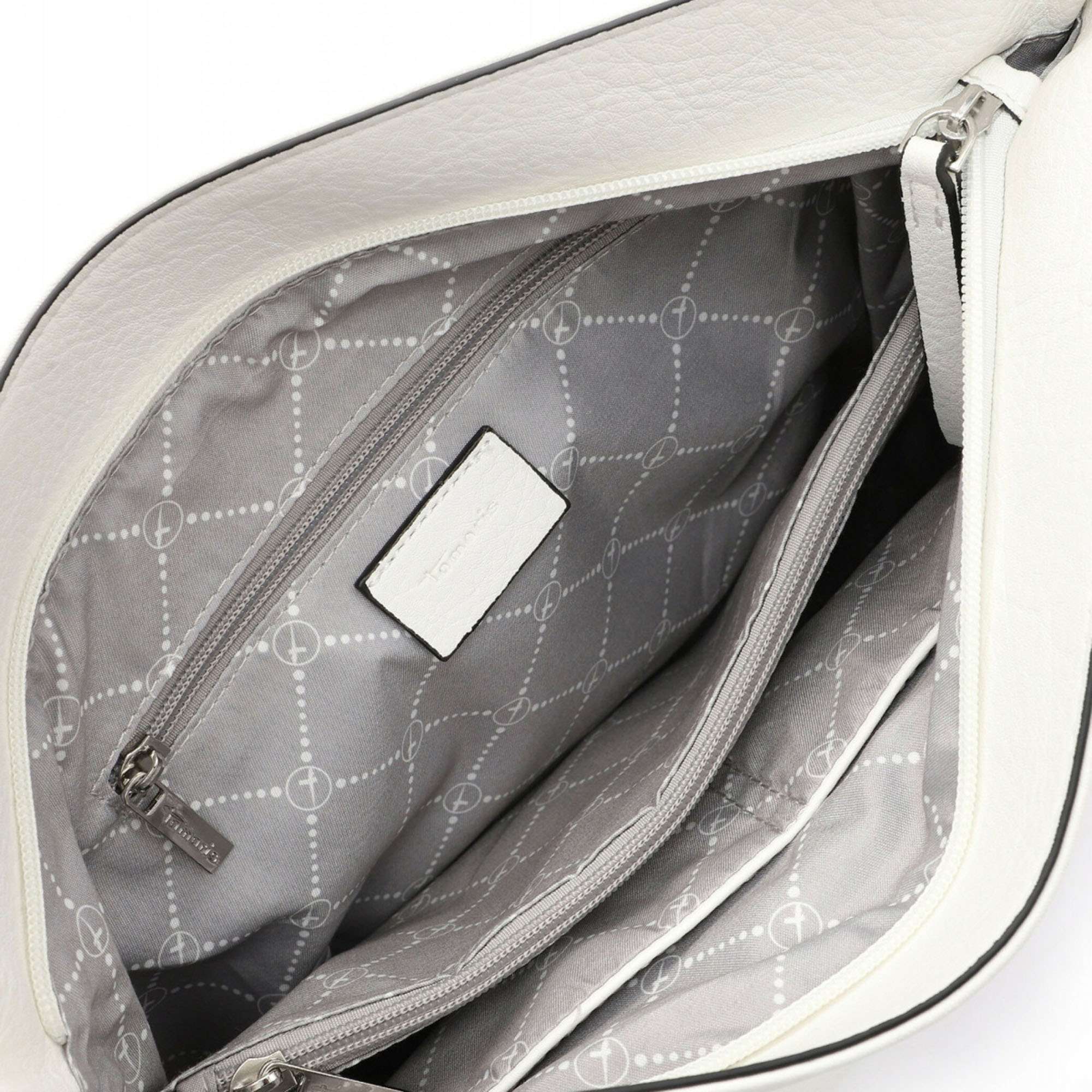Tato dámská crossbody kabelka značky TAMARIS Vás oslní svou neskutečnou praktičností. Má totiž obrovské množství kapsiček různých velikostí. Většina je na zip, takže všechny Vaše cennosti budou bezpečně uloženy. Je ozvláštněna kovovým přívěskem s logem značky a originálním odepínatelným střapcem. U horního okraje se nachází zip, po jehož rozepnutí uvnitř najdeme tři části. Prostřední kapsa je na zip a dvě boční jsou volně otevřené. Tašku lze nosit jak v ruce, tak i přes rameno díky odepínatelným popruhům, delší popruh je délkově nastavitelný. Ideální model na výlety s rodinou nebo s přáteli.