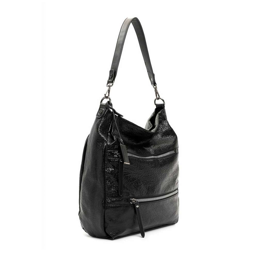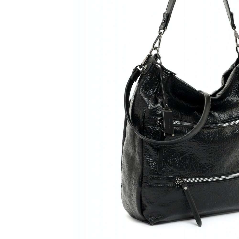 Lesklý svršek, dlouhý nastavitelný popruh, zip, kterým si kabelku uzavřete, dvě přední kapsy, které zdobí kabelku a zdůrazňují její jedinečný vzhled.