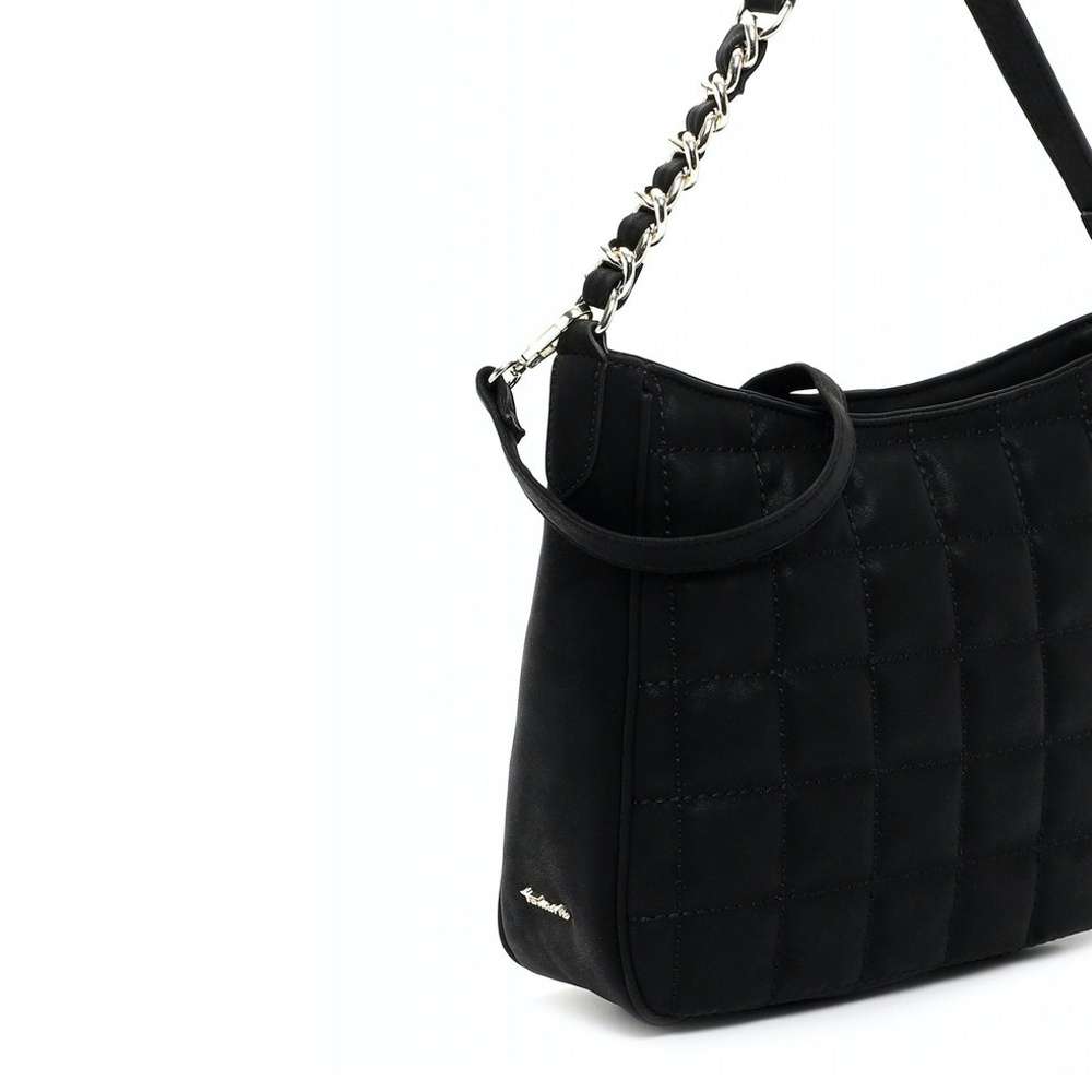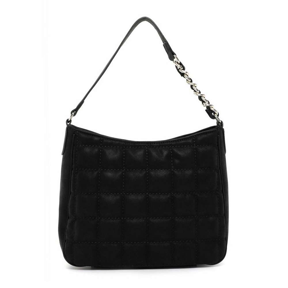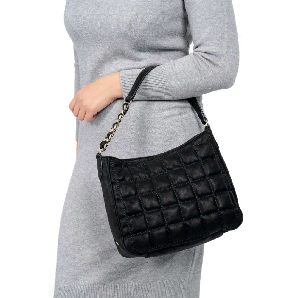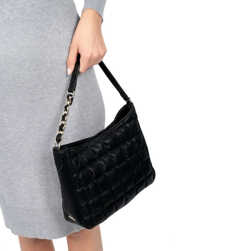 Taška přes rameno s nastavitelným popruhem, jemný semišový materiál, prošití v barvě kabelky do čtverců, to vše jsou znaky této kabelky. Uzavírá se pomocí zipu, po jehož otevření uvnitř naleznete kapsičky pro Vaše drobnosti.