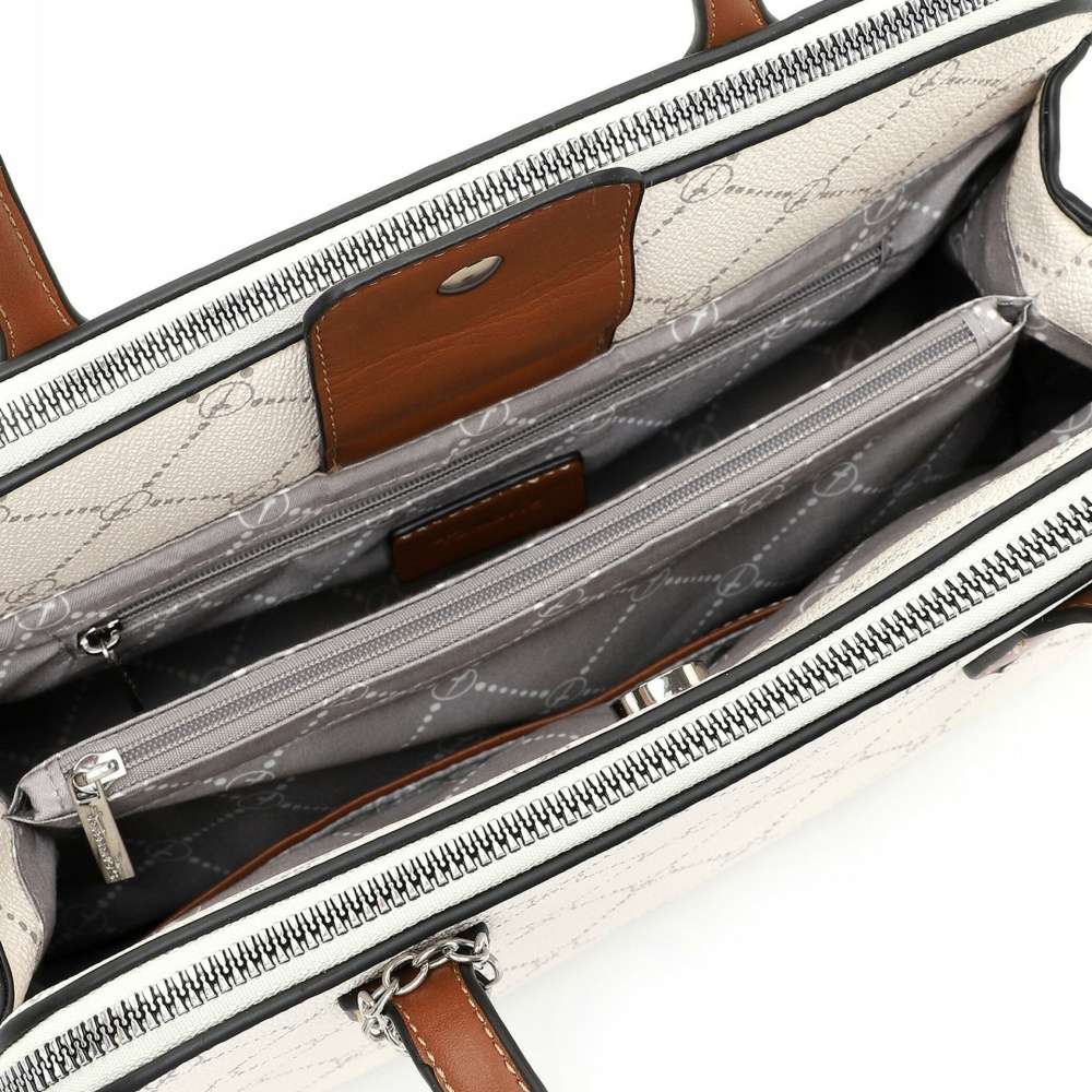 Tuto dámskou kabelku značky TAMARIS zaručeně ocení Ty z Vás, které mají rády přehled. Svršek kabelky je zdoben potiskem loga značky TAMARIS a malým přívěskem. Kabelka má dvě hlavní kapsy uzavíratelné na zip, mezi nimiž se nachází ještě jedna hlavní kapsa uzavíratelná magnetickým klipem, po jehož rozepnutí se otevře prostorná kapsa s dalšími kapsičkami na zip. Kabelka má dvě ucha pro pohodlné nošení v ruce. V této taštičce uložíte skutečně všechny cennosti na své místo. S tímto kouskem zazáříte v sukni i v kalhotách, ve městě i na pracovní schůzce. Rozměry cca: v 22 cm x š 29,5 cm x h 10 cm Vnitřní uspořádání: kabelka je dělená