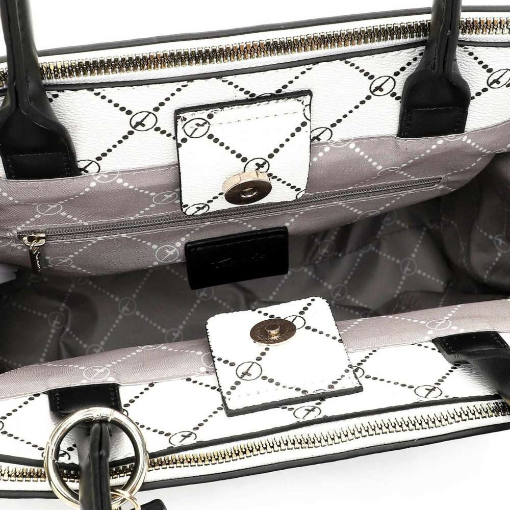 Dámská kabelka značky Tamaris se hodí ke každému outfitu. Svršek zdobený pruhem, ve kterém je zkratka značky Tamaris a z druhé strany mřížkovaný potisk udělá radost i Vás. Tuhle krásku můžete nosit jak přes rameno, tak v ruce. Vnitřní kapsy jsou na zip, kapsy k sobě sepnete magnetickým klipem. Je dostatečně velké na vše, co potřebujete na běžný den, dokonce i menší notebook. Taška je vhodná do školy, práce i na menší výlet.