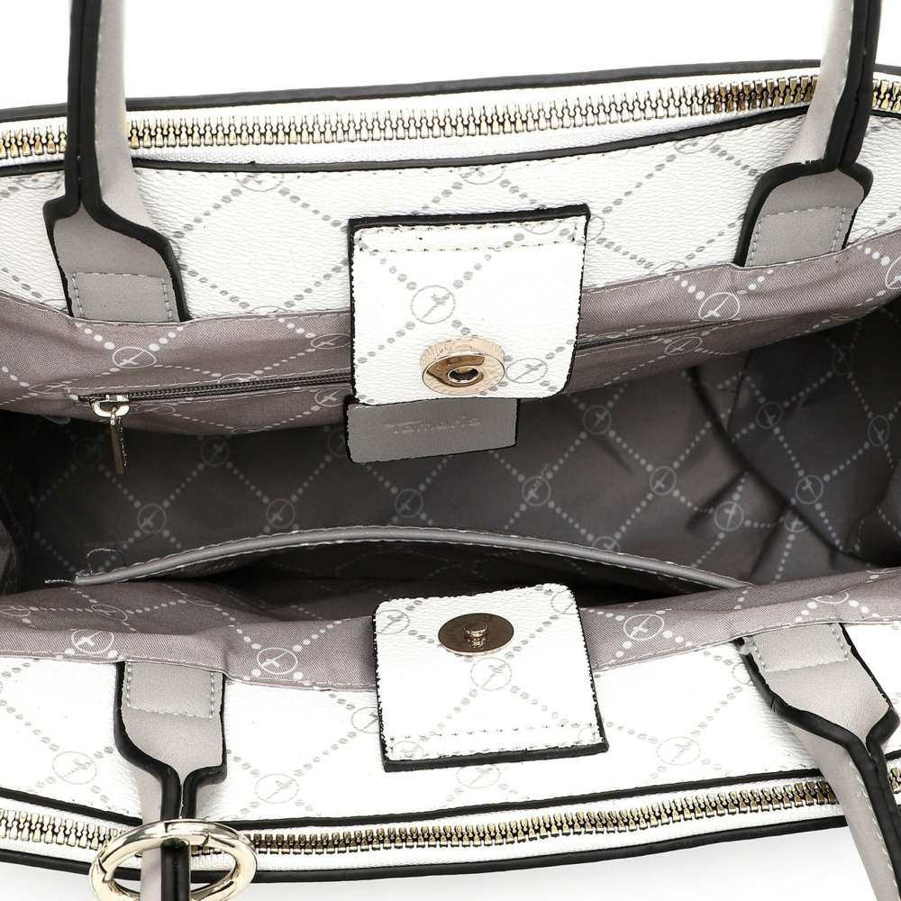 Dámská kabelka značky Tamaris se hodí ke každému outfitu. Svršek zdobený pruhem, ve kterém je zkratka značky Tamaris a z druhé strany mřížkovaný potisk udělá radost i Vás. Tuhle krásku můžete nosit jak přes rameno, tak v ruce. Vnitřní kapsy jsou na zip, kapsy k sobě sepnete magnetickým klipem. Je dostatečně velké na vše, co potřebujete na běžný den, dokonce i menší notebook. Taška je vhodná do školy, práce i na menší výlet. Rozměry: cca v 28 cm x š 35 cm Kabelka má popruh, který lze odepnout