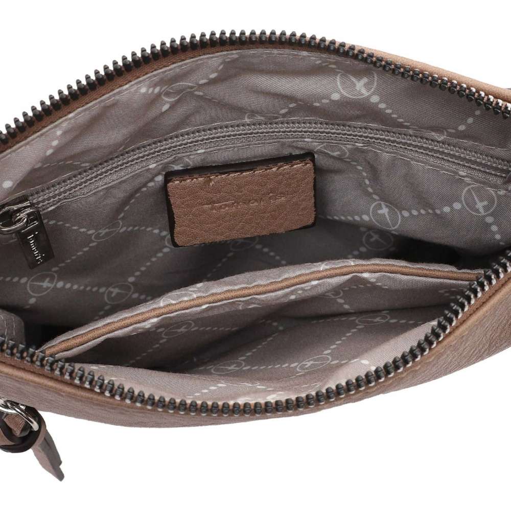 Dámskou crossbody kabelku značky TAMARIS oceníte při každodenním nošení a sladíte ji snad se všemi Vašimi outfity. Kabelka má vzhled pravé kůže, svršek je ozdoben jemným logem značky a stříbrným zipem, po jehož rozepnutí se otevře kapsička na Vaše drobnosti. Hlavní prostor se uzavírá pomocí zipu, uvnitř najdete další dvě malé kapsičky, z čehož jedna je na zip. Taška má dlouhý popruh, který si můžete nastavit na Vámi zvolenou délku a nelze jej odepnout. Tato crossbody kabelka bude skvěle vypadat s botami z naší kolekce.