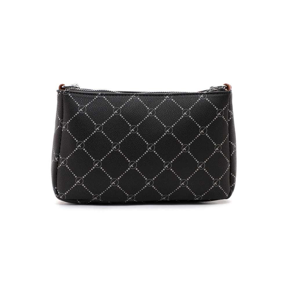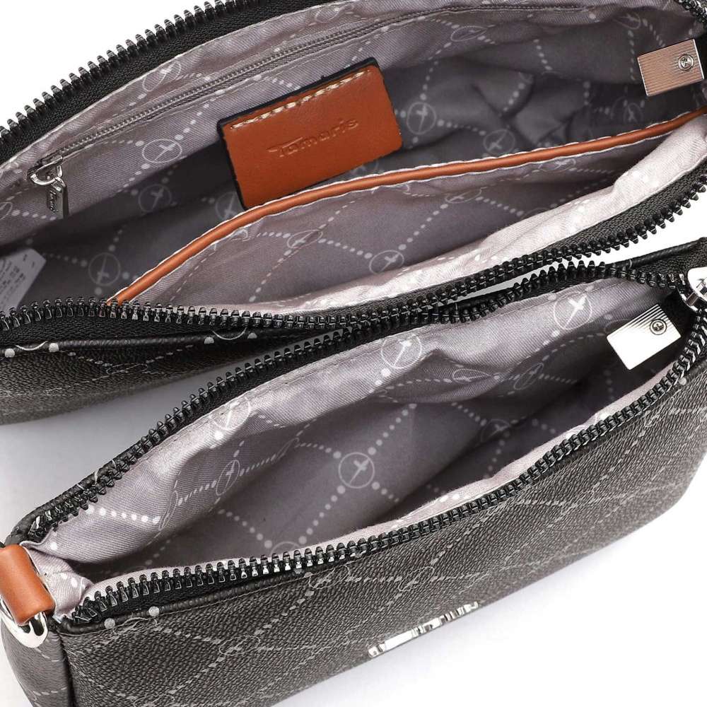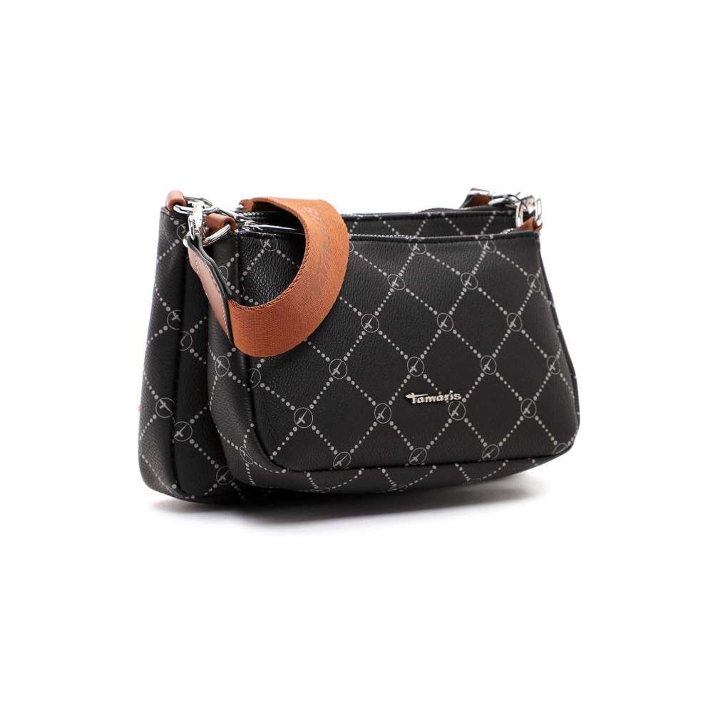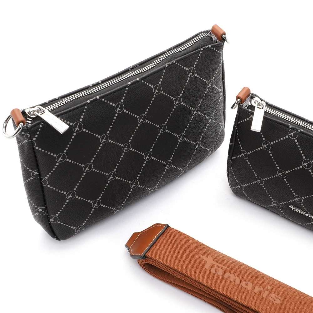S touto stylovou taškou přes rameno značky TAMARIS nebude uspořádání Vašich cenností žádný problém. Taška je rozdělena na dvě části uzavíratelné pomocí zipu, které je možné od sebe oddělit a používat jako dvě samostatné malé kabelky. Uvnitř větší části najdete dvě kapsičky, z nichž jedna je na zip. Tento model je vyroben z jemného syntetického materiálu. Potisk dodává tašce elegantní vzhled. Tvrdší materiál zajišťuje, že se důležité papíry v kabelce nepomačkají. Tento Váš nový společník se nosí přes rameno pomocí praktického délkově nastavitelného popruhu, který je možné odepnout.