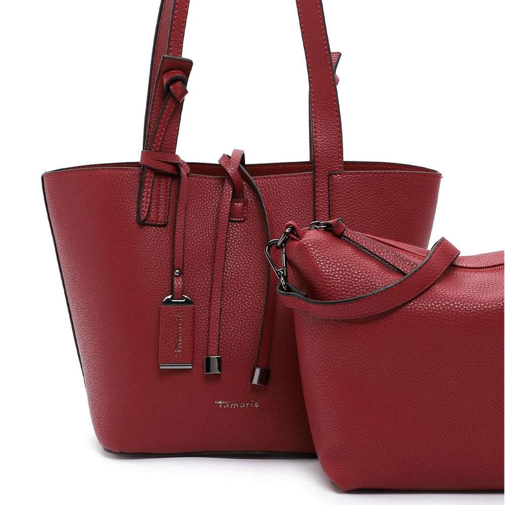 Nadčasová dámská shopperka značky TAMARIS, která nesmí chybět ve Vašem nákupním košíku. Jednoduchý svršek má na sobě logo značky a ozdobu na uchu, kterou lze kdykoliv odepnout. Ke kabelce je přiložena menší taštička na zip s odnímatelným ramenním popruhem, a ta se perfektně vleze do velké shopperky. Tento víceúčelový model zaručí spokojenost každé zákaznici.