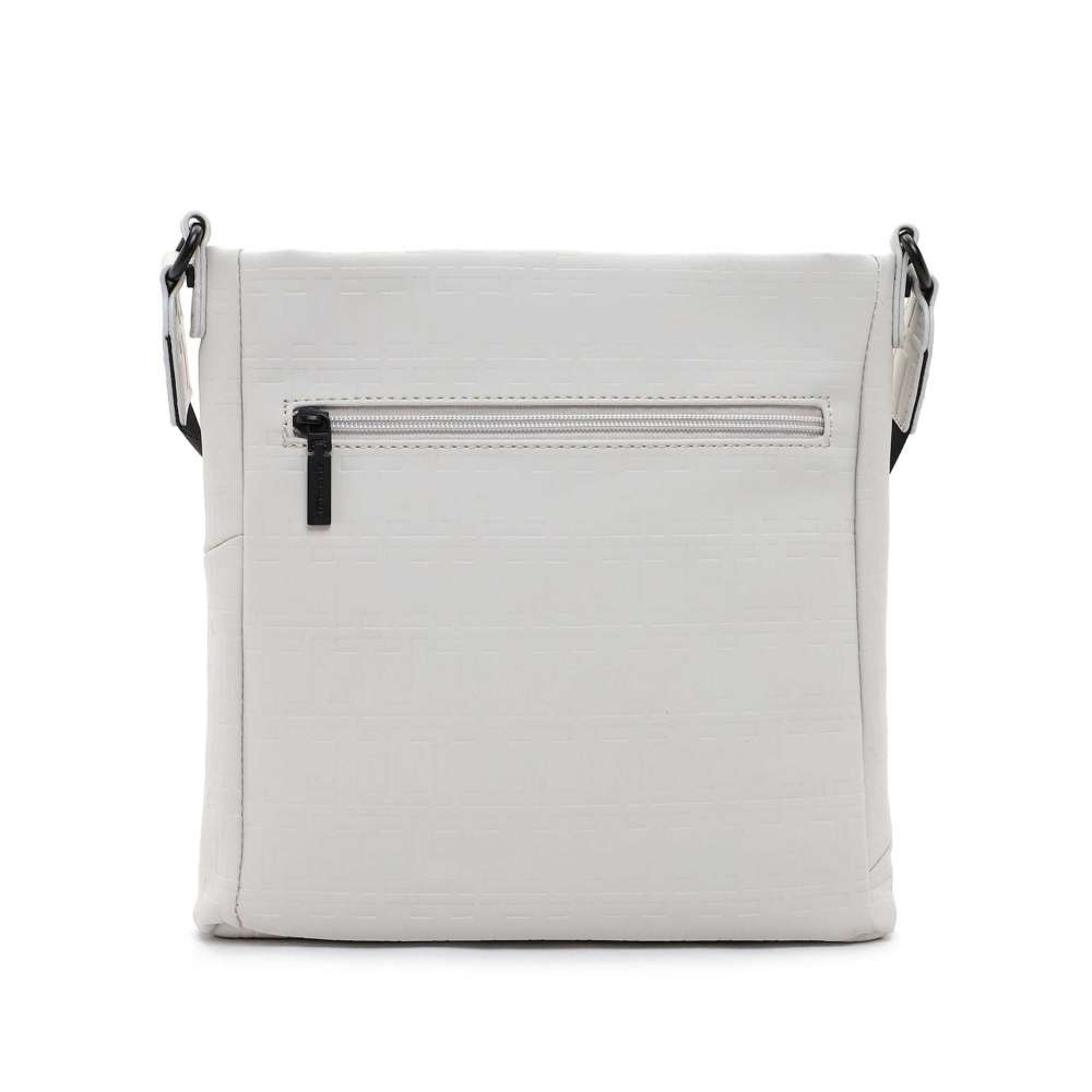 Tato crossbody kabelka značky Tamaris dovede každý Váš outfit k dokonalosti. Svršek v elegantní bílé barvě je decentně zdoben vytlačenými písmeny T. Přední díl je doplněn šikmým zipem a jemným logem na spodní části v kontrastní černé barvě. Na zadním díle se nachází malá kapsička na drobnosti. Pomocí zipu na vrchním kraji tašky se dostanete do hlavní kapsy, která je vybavena krásnou podšívkou. Zde se nachází další dvě drobné kapsičky. Díky délkově nastavitelnému popruhu černé barvy si pak crossbody upravíte dle potřeby. Tento model bude skvělý na celodenní nošení například na cestu do města anebo setkání s přáteli. Rozměry: 27 x 28cm Vnitřní uspořádání: Kabelka není dělená. Kabelka má délkově nastavitelný popruh.