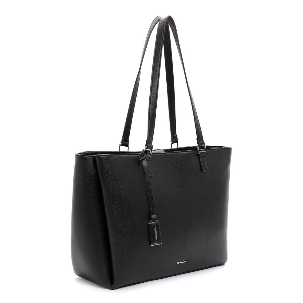 Tato elegantní kabelka v černé barvě od značky Tamaris je skvělým doplňkem pro každou ženu. Hladký svršek zdobí logo značky Tamaris na přední straně i na přívěsku. Tento kousek nabízí hned dvě hlavní kapsy, z toho jednu na zip a druhou na magnetické uzavírání. Hlavní kapsa disponuje navíc menší všitou kapsičkou na zip pro Vaše cennosti. S tímto kouskem zazáříte na každé události. Rozměry: v 30 cm x š 48 cm x h 14 cm Vnitřní uspořádání: kabelka je dělená