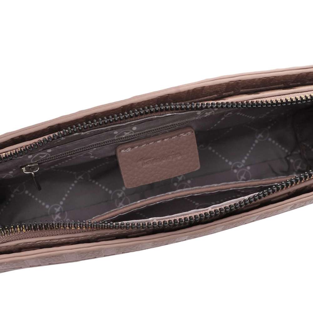 Tato menší kabelka od značky Tamaris je skvělou volbou i na společenské akce. Svršek zdobí vytlačené vzory a logo značky Tamaris na přední straně. Hlavní kapsa na zip disponuje i menšími kapsičkami pro lepší organizaci Vašich drobností. Délkově nastavitelný popruh zajišťuje pohodlné nošení po celý den. Ať už vyrazíte na večírek nebo na rande, budete hvězda. Rozměry: v 15 cm x š 25 cm x h 6 cm Vnitřní uspořádání: kabelka není dělená Kabelka má popruh, který lze odepnout