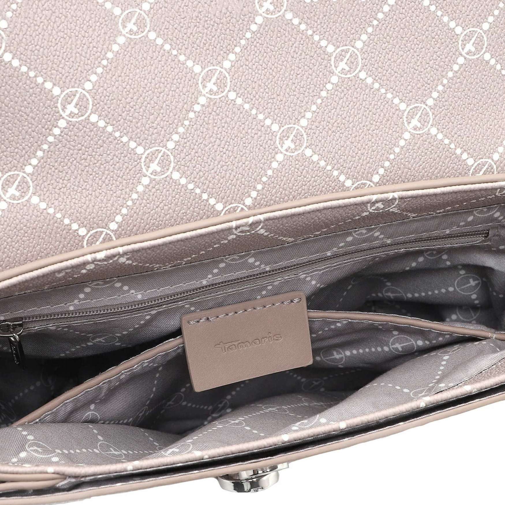 S touto kabelkou Tamaris si doplníte šatník elegancí a originalitou. Svršek zdobí logo značky, jedinečný vzor značky Tamaris a ozdobnou sponou v podobě zapínaní. Hlavní prostor má dvě kapsičky, z toho jednu uzavíratelnou zipem, ideální místo na Vaše cennosti. Kabelka se uzavírá klopou s magnetickým klipem. Díky délkově nastavitelnému popruhu, který se dá odepnout, si kabelku přizpůsobíte podle sebe. Tato kabelka je úžasný doplněk, ať už se chystáte do města nebo jen do práce. Rozměry: cca v 21 cm x š 23 cm Vnitřní uspořádání: kabelka není dělená Kabelka má délkově nastavitelný popruh, který lze odepnout.