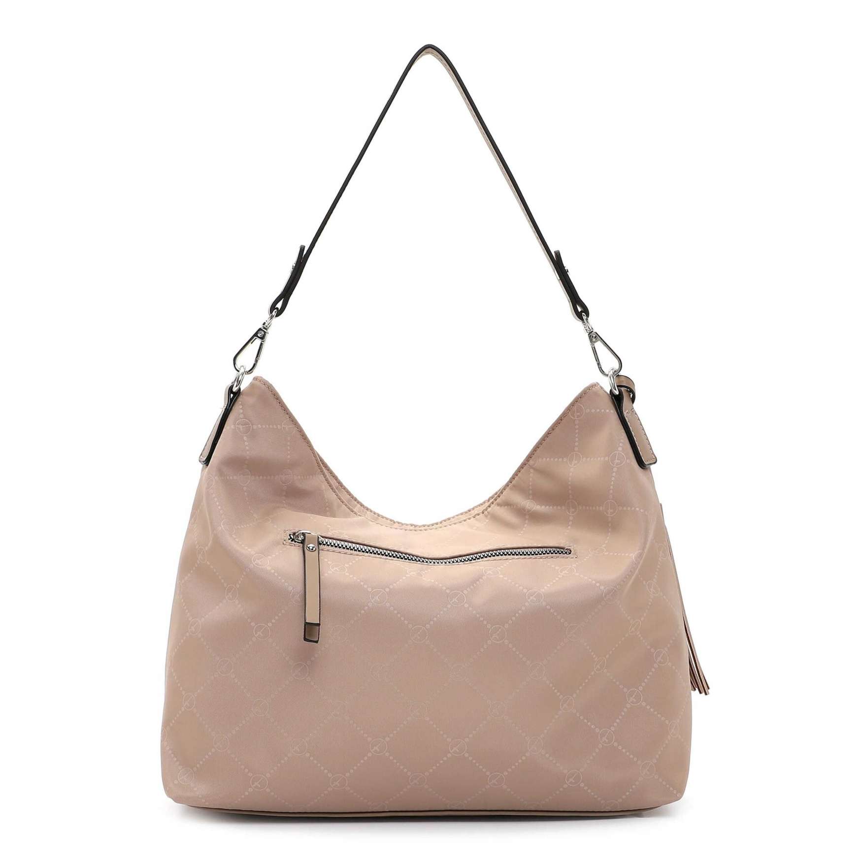 Menší dámská kabelka značky TAMARIS je ideálním společníkem na všech Vašich cestách. Hladký svršek je zdoben potiskem s logem značky TAMARIS a také třásňovým přívěškem. Kabelka je uzavíratelná zipem, po jehož rozepnutí se otevře hlavní kapsa s nádhernou podšívkou a dalšími kapsičkami na všechny Vaše cennosti. Jednu kapsičku na zip najdete také na zadní vnější straně. Tento model je vybaven dvěma popruhy, které lze odepnout, z nichž jeden je délkově nastavitelný. Tašku tedy můžete nosit v ruce i přes rameno. Tato kabelka dokonale doplní všechny Vaše outfity. Rozměry: cca v 33 cm x š 32 cm Vnitřní uspořádání: kabelka není dělená Kabelka má délkově nastavitelný popruh, který lze odepnout.