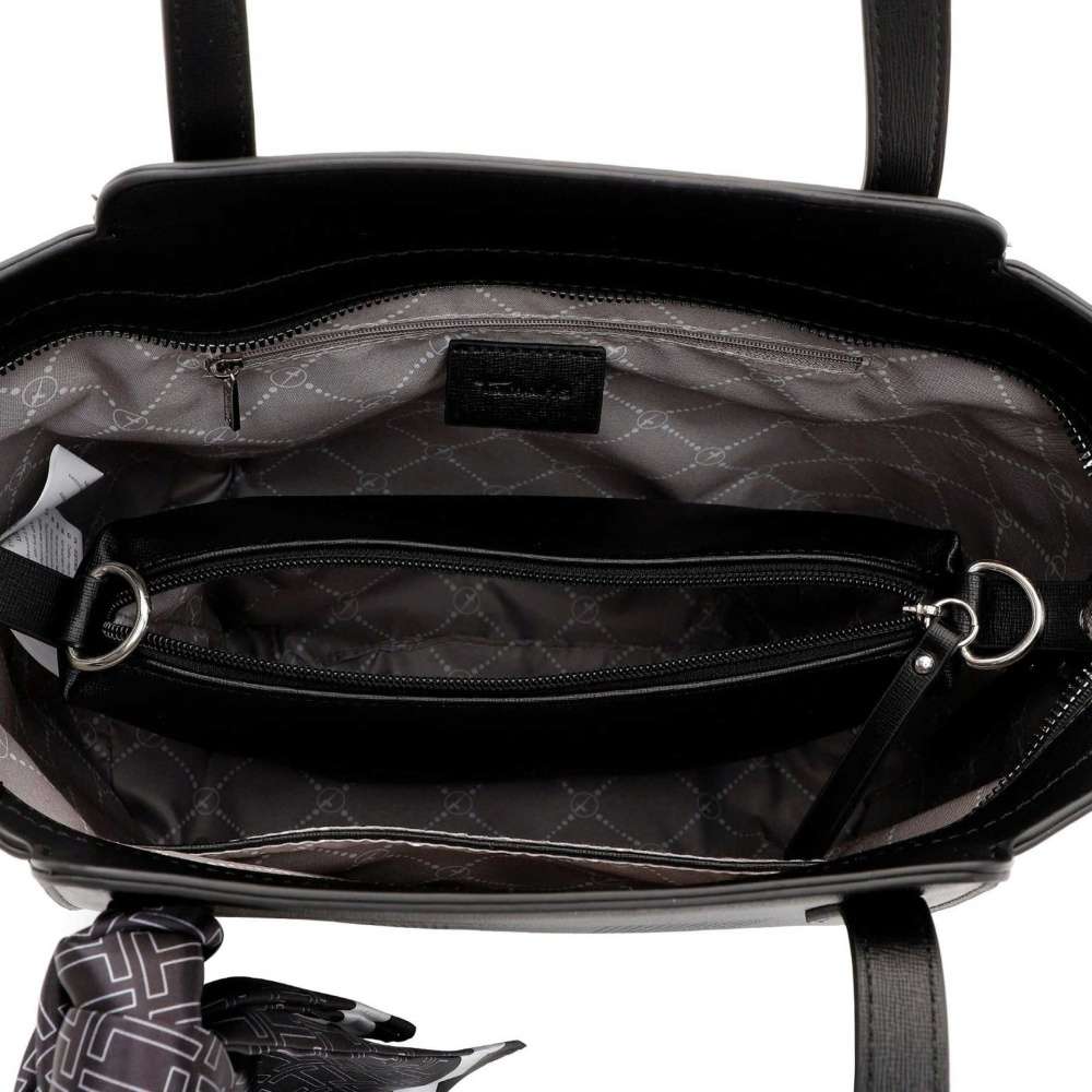Dámská kabelka značky TAMARIS, kterou si můžete doplnit šátkem s logem značky nebo ho použít jako doplněk svého outfitu. Jednobarevný svršek má výrazný potisk písmen T a proto nebude problém sladění s mnoha kousky Vašeho šatníku. Hlavní prostor se uzavírá zipem a může být dělený vyjímatelnou kapsičkou, kterou lze nosit díky nastavitelnému odepínatelnému popruhu jako crossbody. Určitě oceníte i dvě menší kapsičky po stranách. Model si můžete vzít na procházky parkem, nebo na večeři s přáteli.