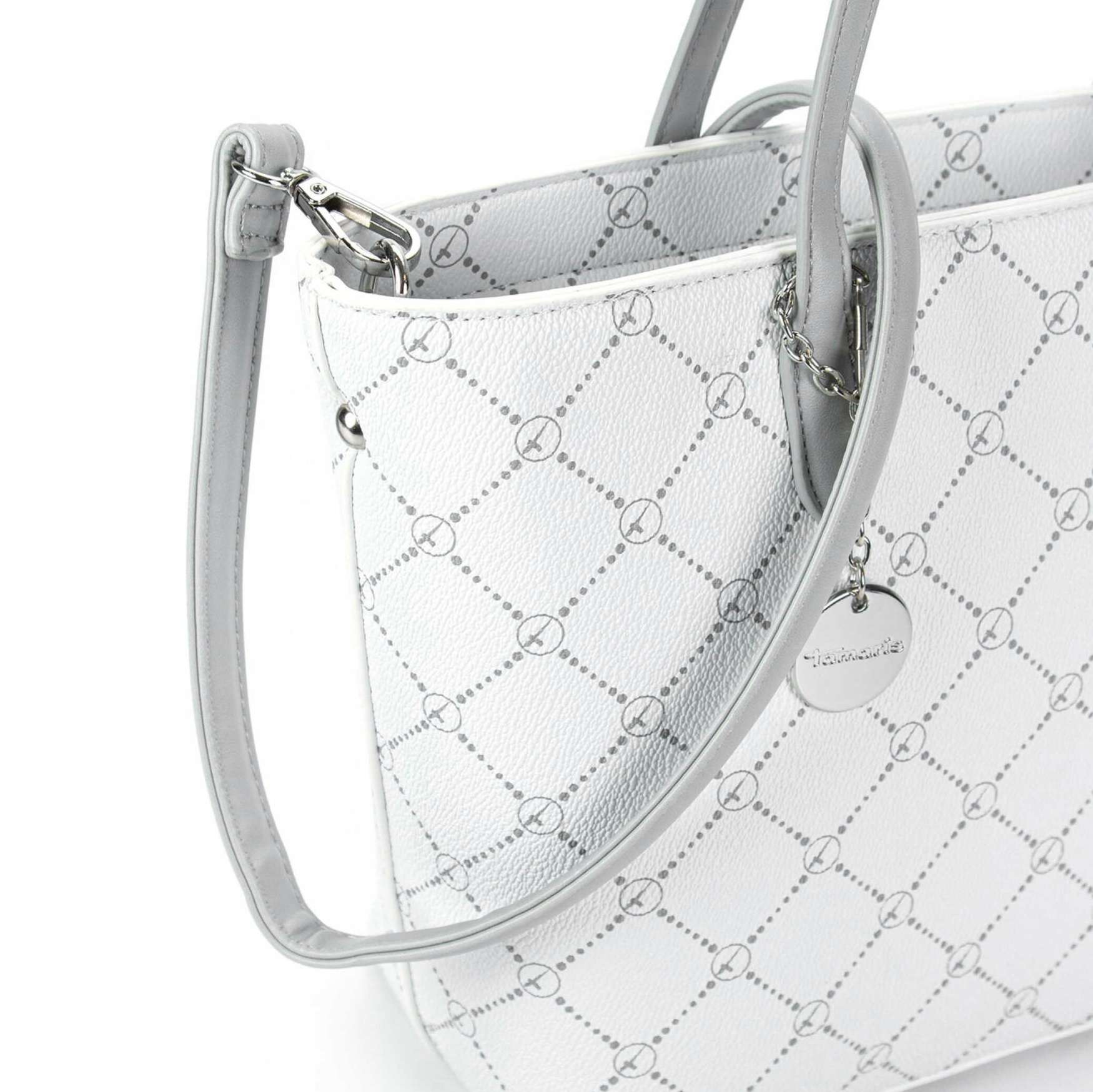 Dámská nadčasová kabelka značky TAMARIS, která má svůj originální a stylový design udávající ten správný nádech luxusu. Ze zadní strany Vás určitě potěší malá kapsička sloužící k uložení různých drobností. Uzavírá se zipem, po jehož rozepnutí se Vám nabízí hlavní kapsa s malými bočními kapsičkami. Taška je z pevného materiálu, takže věci, které se nesmí mačkat, můžete bezpečně přenášet. Kabelku zdobí přívěšek s logem značky. Má dvě uši šedé barvy pro pohodlné nošení v ruce a také odepínatelný popruh pro nošení přes rameno. S tímto stylovým kouskem budete nepřehlédnutelná, bude Vám dělat ozdobu při každé příležitosti. Kabelka je vhodná jak na společenské akce, tak pro běžné používání, a to zejména díky svému praktickému uspořádání vnitřního obsahu.
