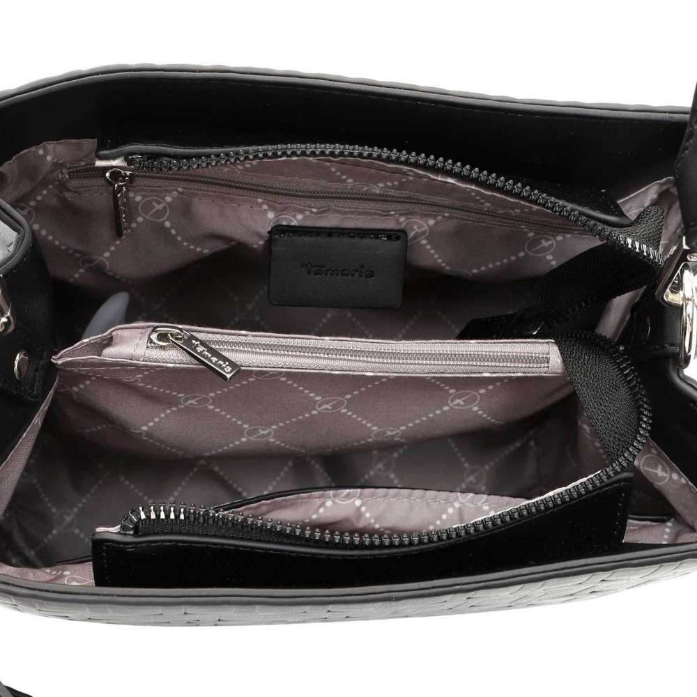 Tato okouzlující kabelka značky TAMARIS je vyrobena z jemného syntetického materiálu. Aplikace s přívěskem loga a třásní tvoří pěkný doplněk. Po otevření vrchního zipu se otevře vnitřní prostor tašky, rozdělen je na dvě části středovým panelem. Uvnitř kabelky najdete dvě malé kapsičky. Kabelka je z pevného materiálu, takže v ní můžete bezpečně přepravovat všechny Vaše cennosti, včetně těch, které se nesmí pomačkat. Tašku můžete nosit v ruce i přes rameno díky praktickému madlu a délkově nastavitelnému odnímatelnému popruhu. Pořiďte si tento správný doplněk pro každou příležitost.