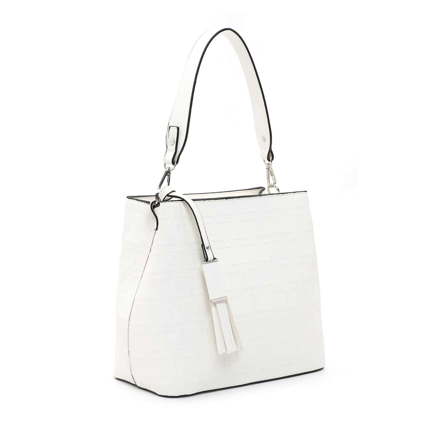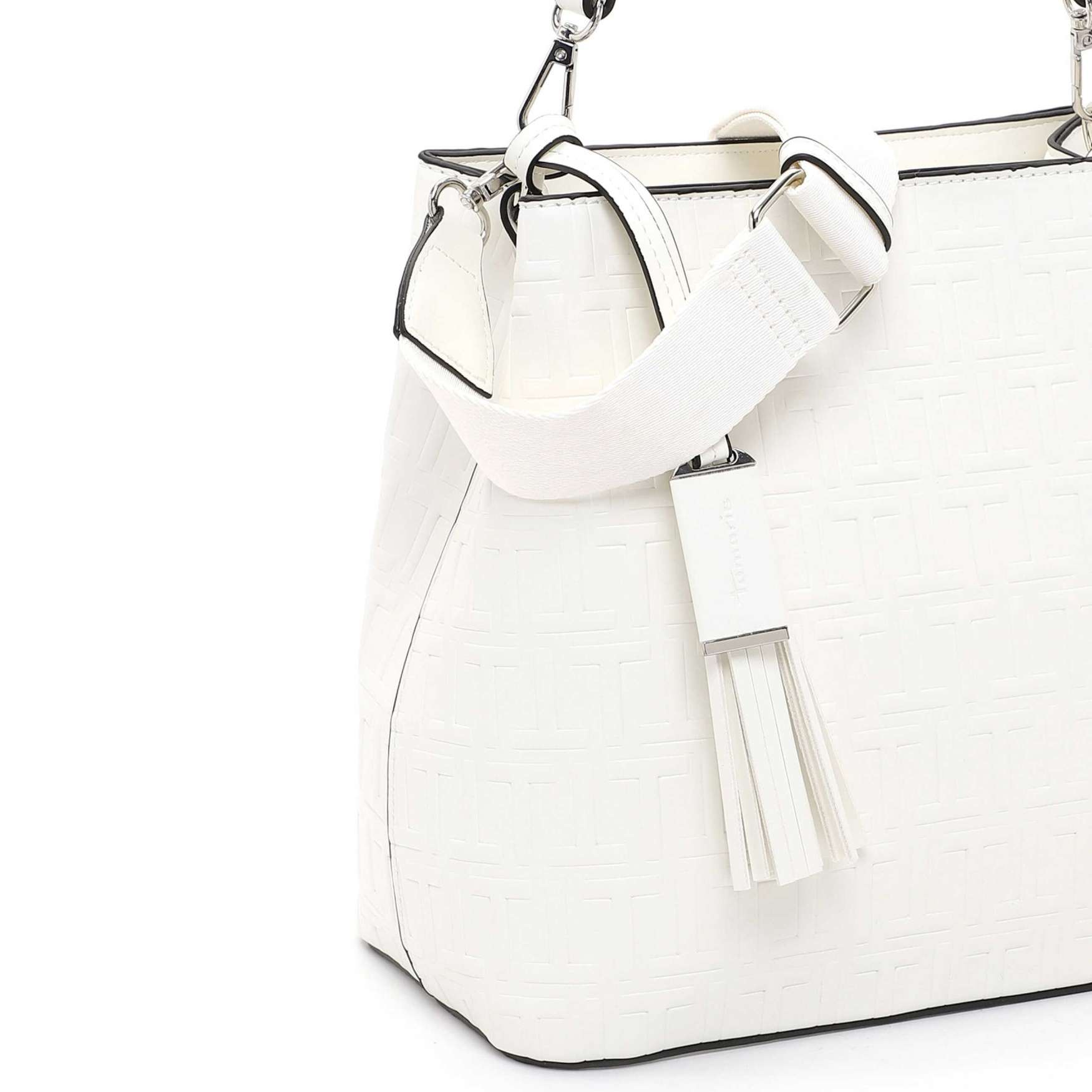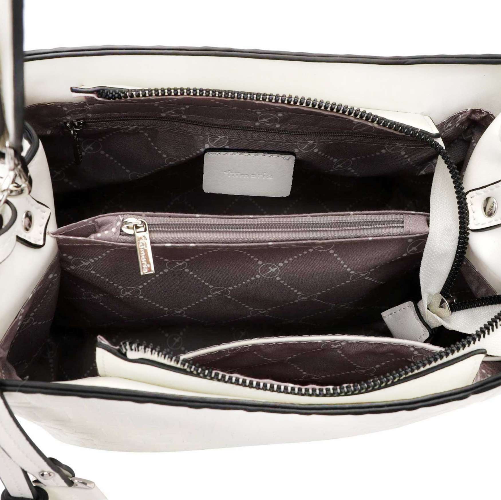 Tato okouzlující kabelka značky TAMARIS je vyrobena z jemného syntetického materiálu. Aplikace s přívěskem loga a třásní tvoří pěkný doplněk. Po otevření vrchního zipu se otevře vnitřní prostor tašky, rozdělen je na dvě části středovým panelem. Uvnitř kabelky najdete dvě malé kapsičky. Kabelka je z pevného materiálu, takže v ní můžete bezpečně přepravovat všechny Vaše cennosti, včetně těch, které se nesmí pomačkat. Tašku můžete nosit v ruce i přes rameno díky praktickému madlu a délkově nastavitelnému odnímatelnému popruhu. Pořiďte si tento správný doplněk pro každou příležitost.