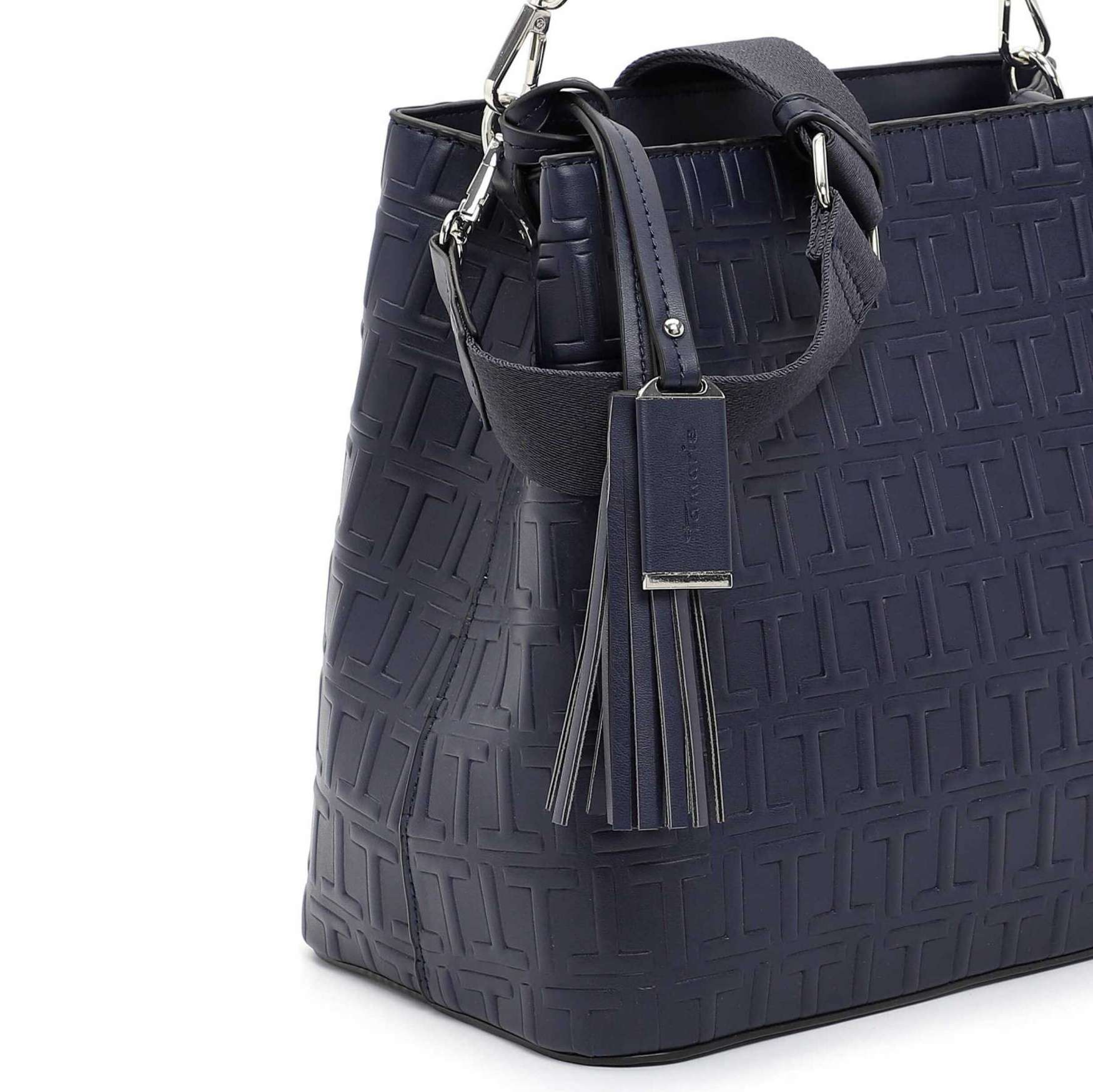 Tato okouzlující kabelka značky TAMARIS je vyrobena z jemného syntetického materiálu s potiskem písmena T. Aplikace s přívěskem loga a třásní tvoří pěkný doplněk. Po otevření vrchního zipu se otevře vnitřní prostor tašky, rozdělen je na dvě části středovým panelem. Uvnitř kabelky najdete dvě malé kapsičky. Kabelka je z pevného materiálu, takže v ní můžete bezpečně přepravovat všechny Vaše cennosti, včetně těch, které se nesmí pomačkat. Tašku můžete nosit v ruce i přes rameno díky praktickému madlu a délkově nastavitelnému odnímatelnému popruhu. Pořiďte si tento správný doplněk pro každou příležitost. Rozměry: cca v 25 cm x š 26 cm Vnitřní uspořádání: kabelka je dělená Kabelka má délkově nastavitelný popruh, který lze odepnout.