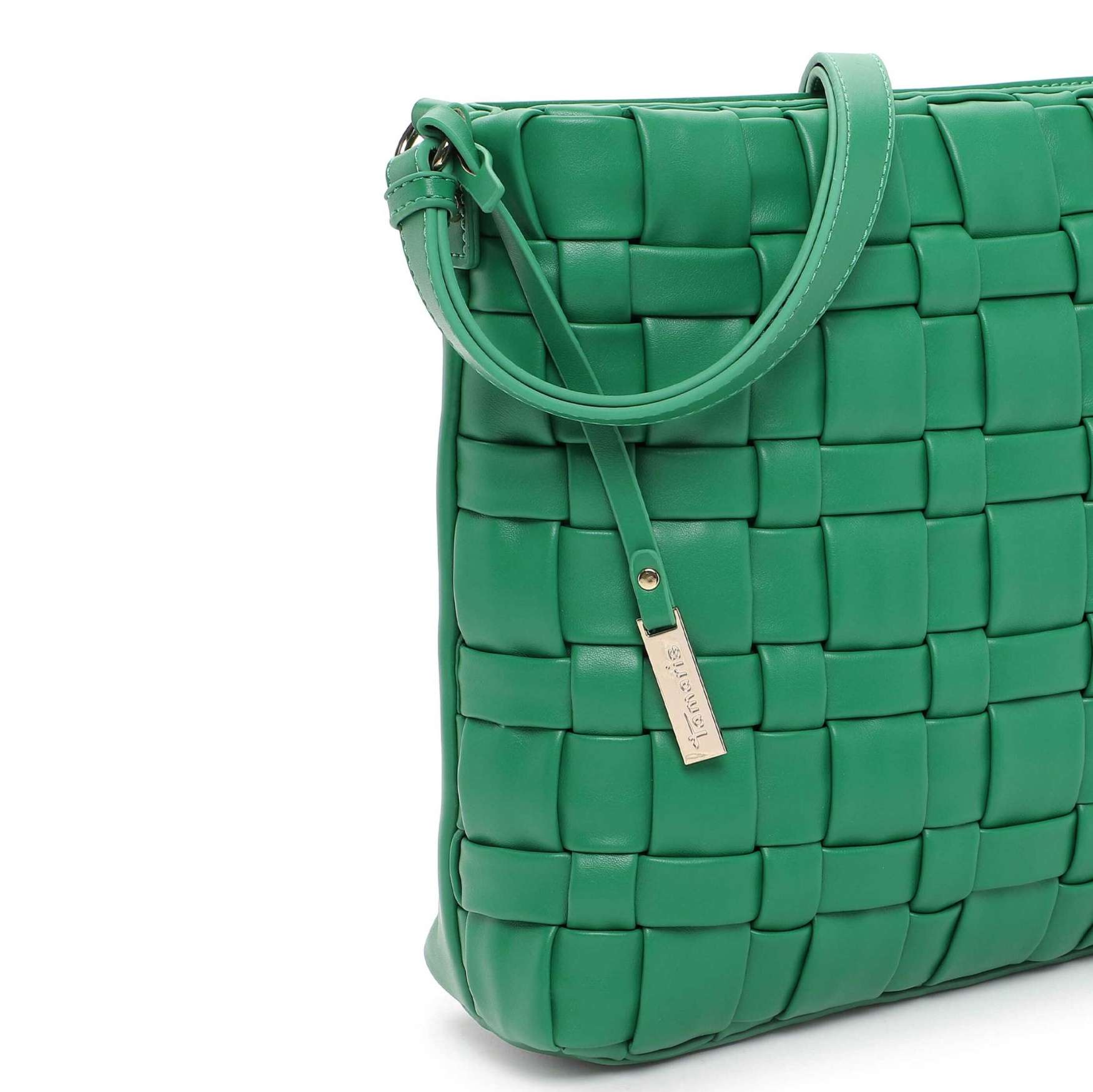 Detailní informace Kabelka Tamaris vyrobená přímo pro Vás, nepřehlédnutelný svršek zelené barvy s proplétaným vzorem a doplněný visící ozdobou tvoří dokonalý celek moderního vzhledu. Praktická žena ocení malou kapsičku na zadní straně, kde lze uložit drobnosti. Vrchní zip uzavírá hlavní prostor se dvěma malými kapsičkami pro lepší organizaci věcí a jedna má i zip pro uzavření. Kabelka má délkově nastavitelný popruh a už je jen na Vás, zda ji budete nosit přes rameno nebo jako crossbody do práce nebo na procházku městem.